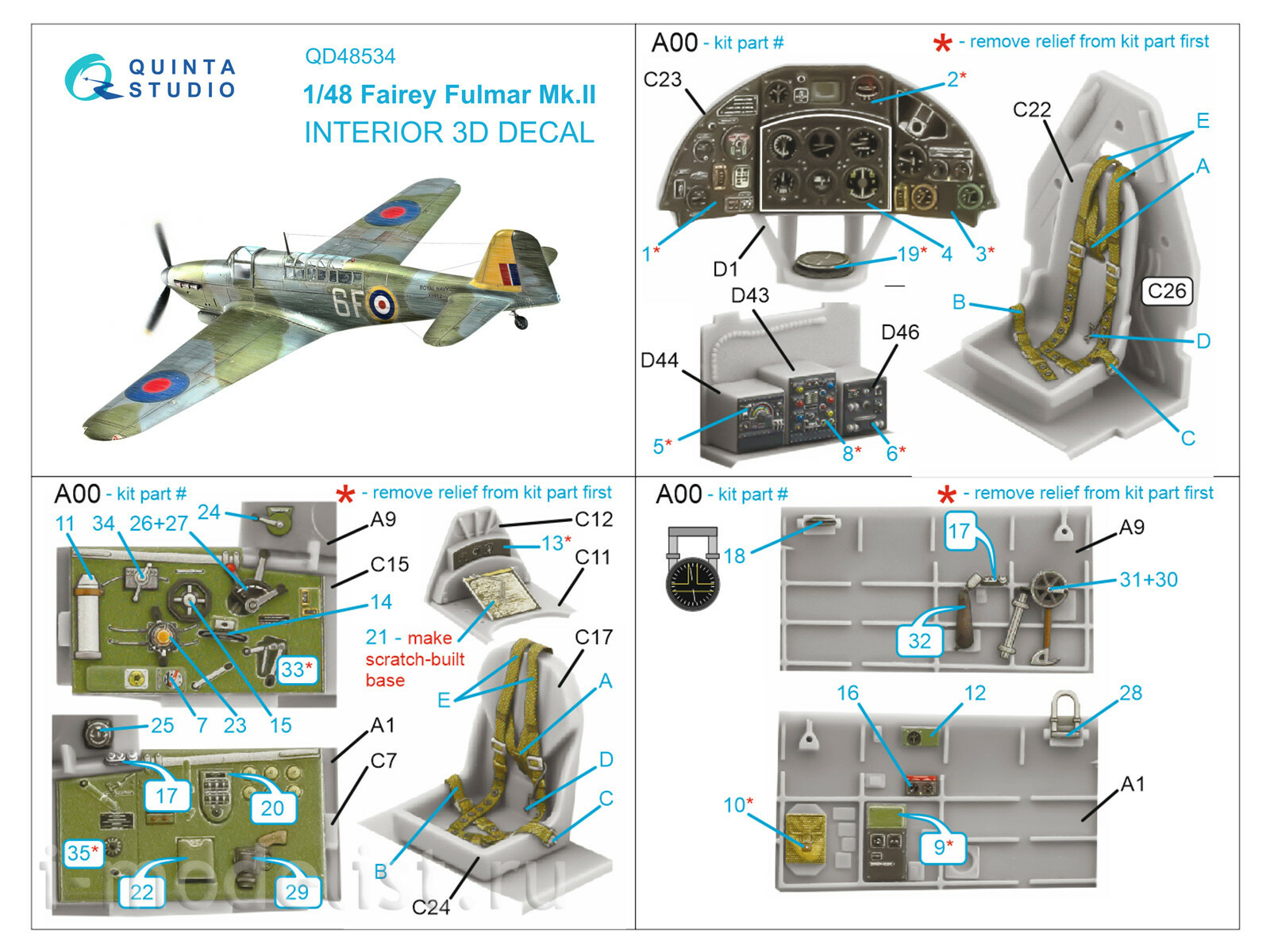 QD48534 Quinta Studio 1/48 3D Декаль интерьера кабины Fairey Fulmar Mk.II (Т$ач)