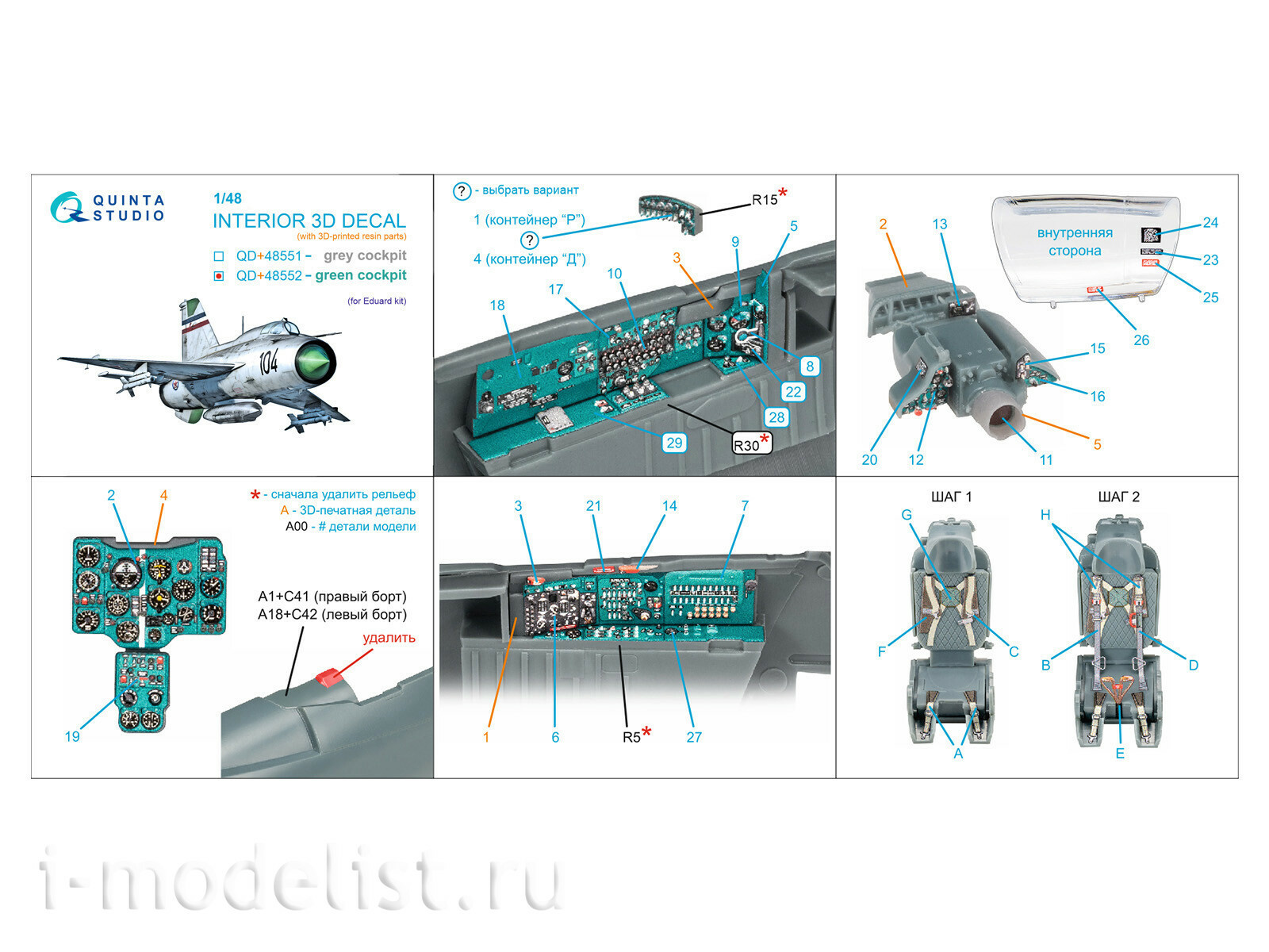 QD+48552 Quinta Studio 1/48 3D Декаль интерьера кабины MiGG-21Р, изумрудные панели (Eduard) (с 3D-печатными деталями)