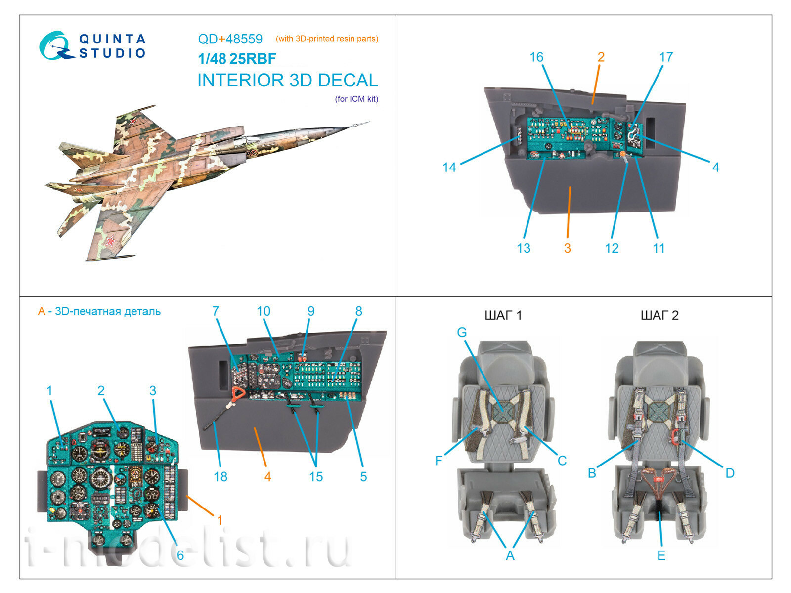 QD+48559 Quinta Studio 1/48 3D Декаль интерьера кабины MiGG-25РБФ (ICM) (с 3D-печатными деталями)