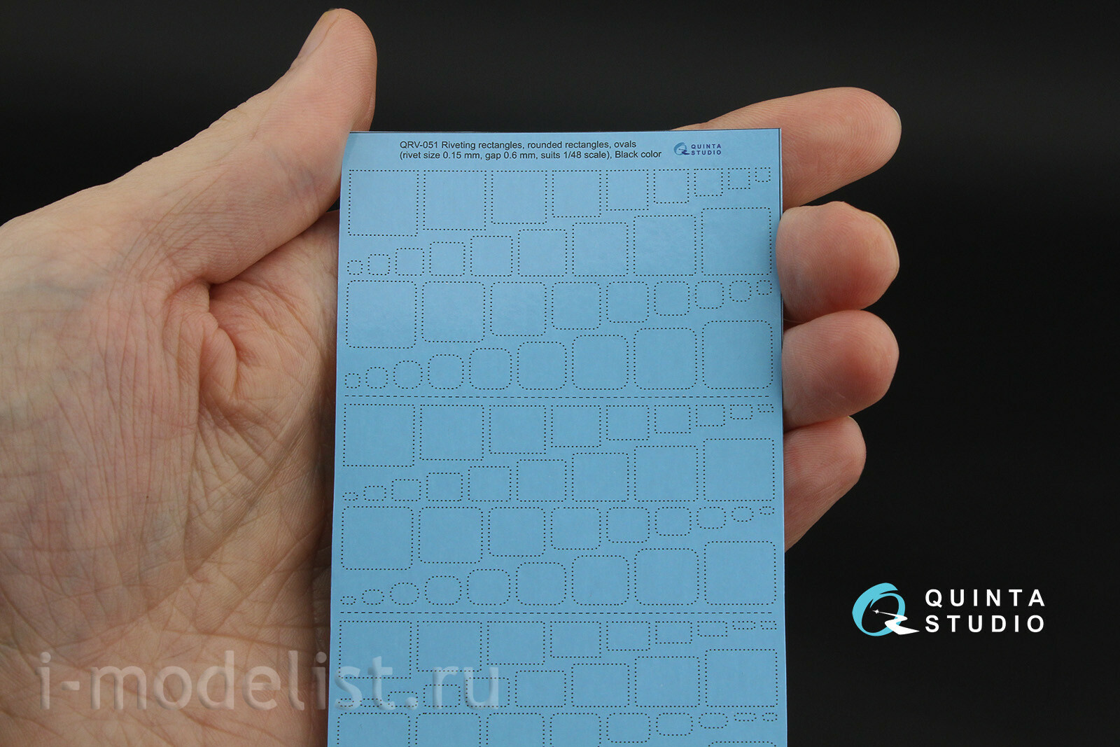 QRV-051 Quinta Studio 1/48 Клепочные ряды: прямоугольники и овалы (размер клепки 0.15 mm, интервал 0.6 mm, масштаб 1/48), черны