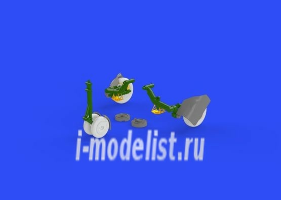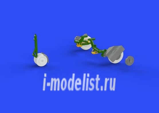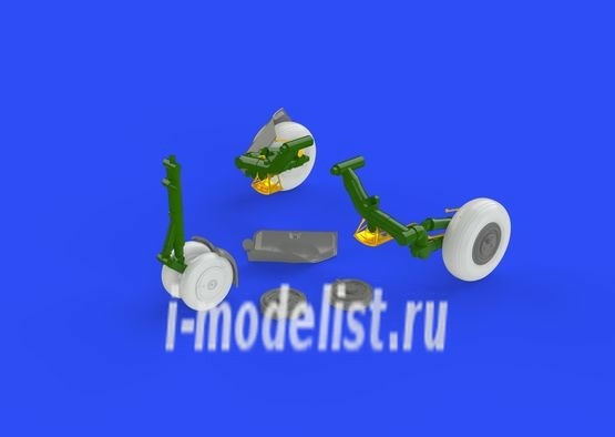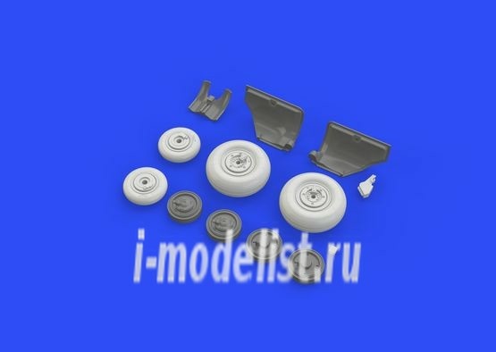 Brassin wheel set for MiG-23BN 1/48 scale by Trumpeter. The kit includes 2 front wheels with mudguard and two main wheels with covers.
