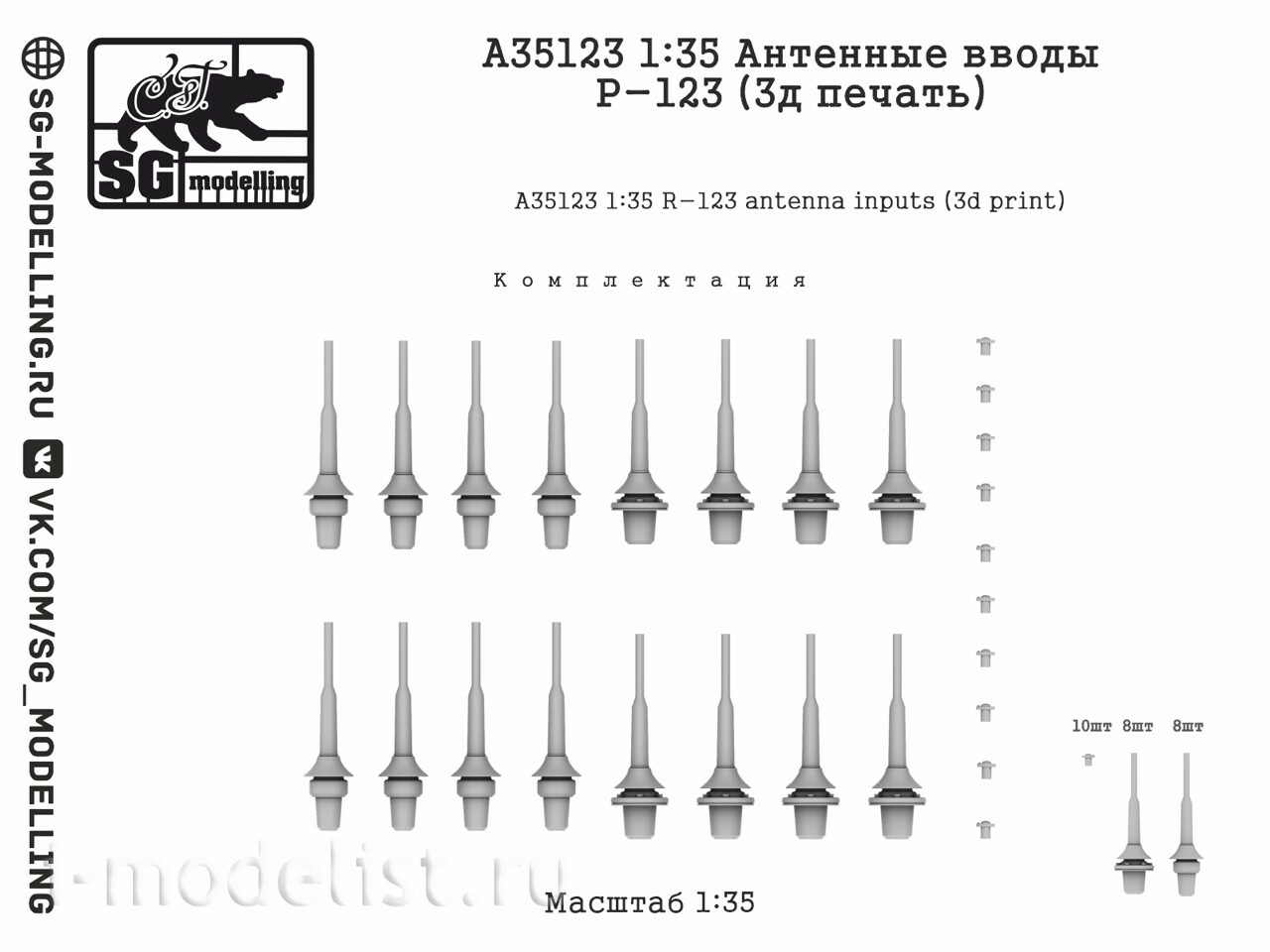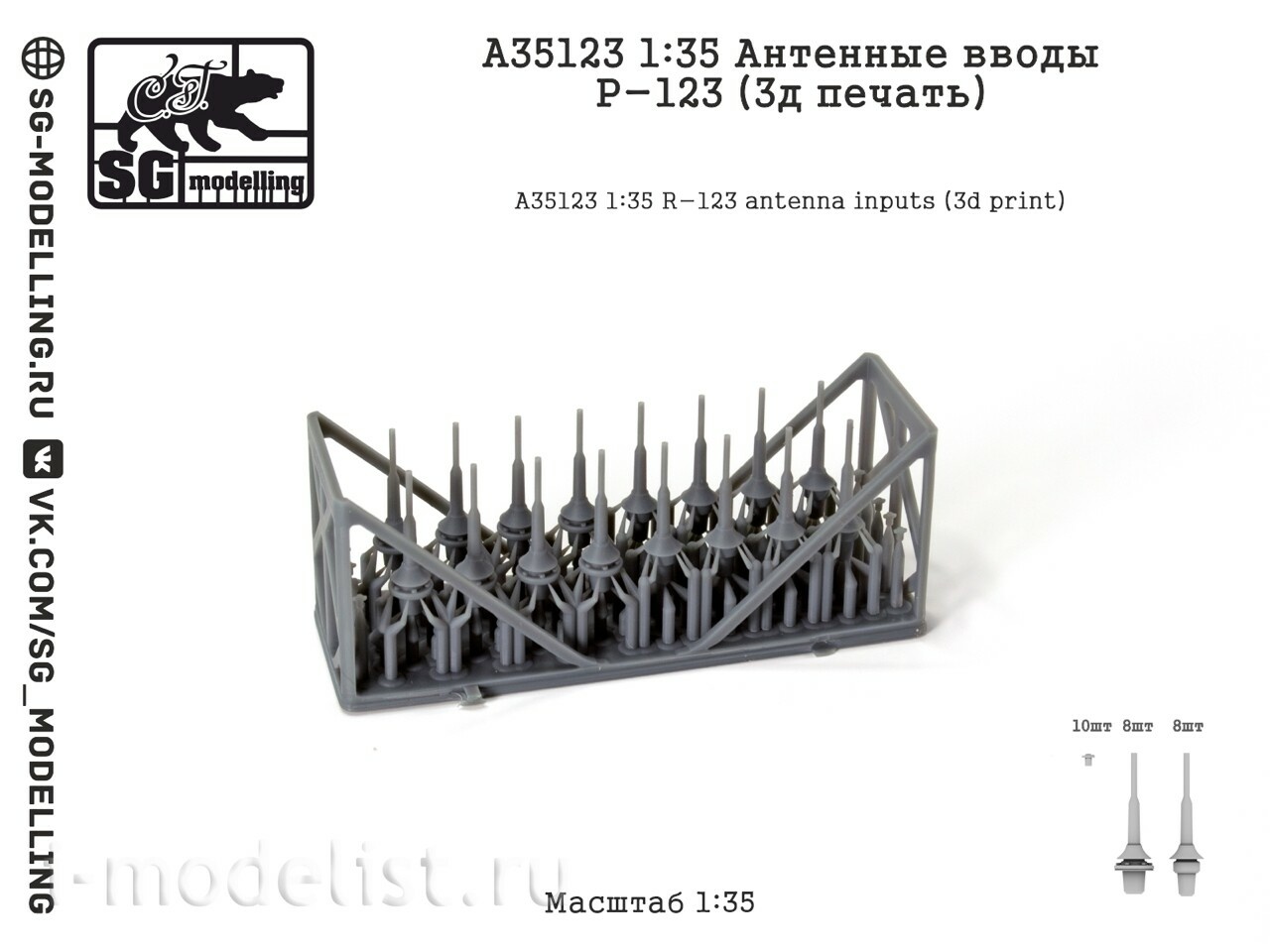 A35123 SG Modelling 1/35 Антенные вводы Р-123 (3D-печать)