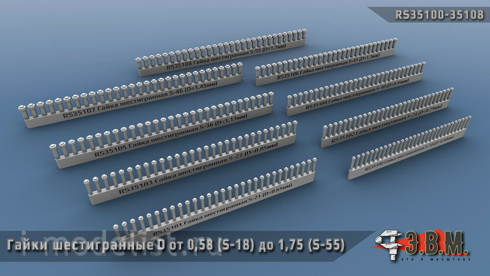 RS35105 Э.В.М. 1/35 Гайка шестигранная S=30 (D=0,94). Посаtoчный D=0.7 мм