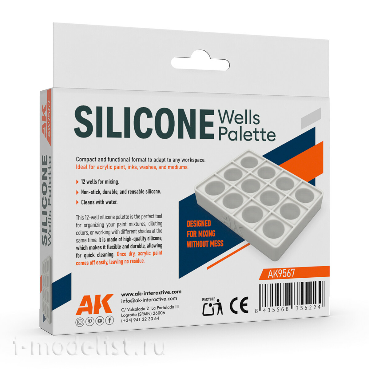 AK9567 AK Interactive Силиконовая палитра / SILICONE WELLS PALETTE