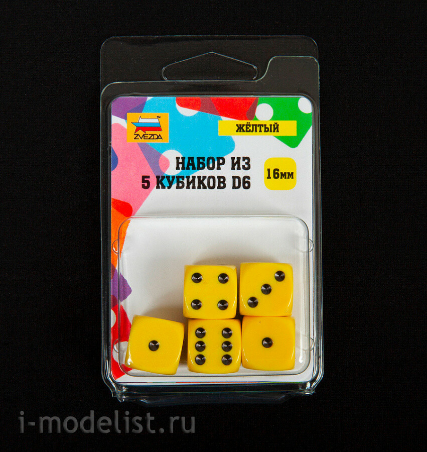 1225 Zvezda Набор из 5 кубиков D6, 16мм. Желтый с черными точками в блистере