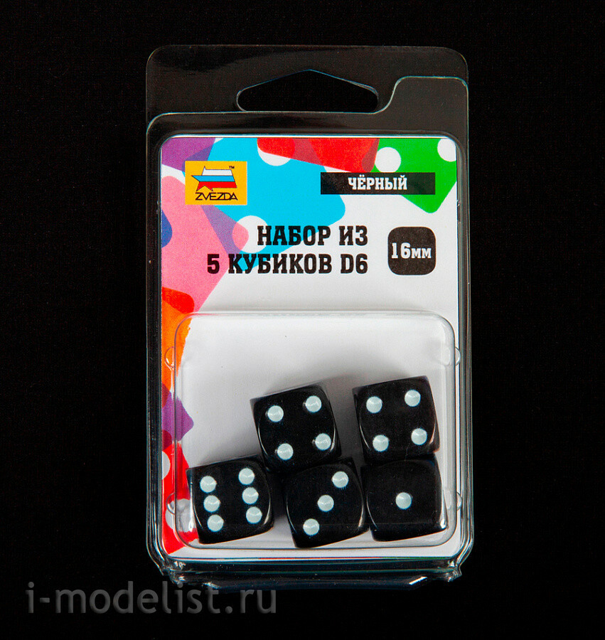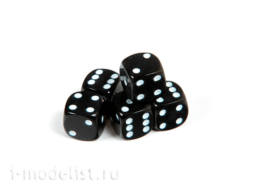 1237 Zvezda Набор из 5 кубиков D6, 16мм. Черный с белыми точками в блистере