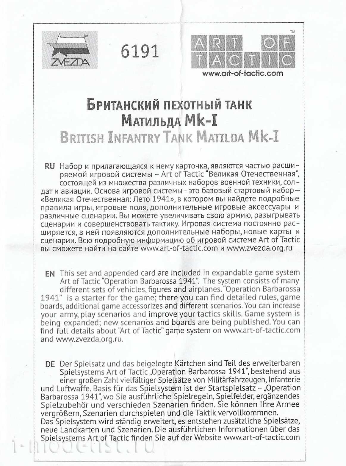 6191 Zvezda 1/100 British infantry tank Matilda MK-I