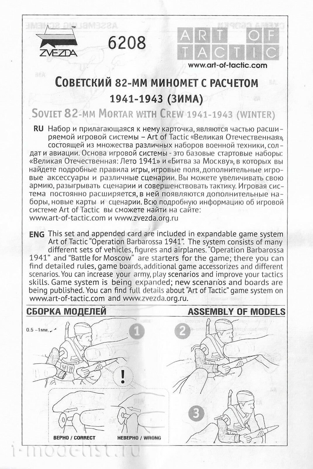 Soviet 82-mm mortar was a powerful mobile infantry support in the early WWII and subsequent years of the war. The scale model copies the prototype of the squad in detail, presenting the highest quality product to the modelers. Players will be able to use the squad as a combat unit in the game system Art of Tactic. Low price and easy Assembly.
