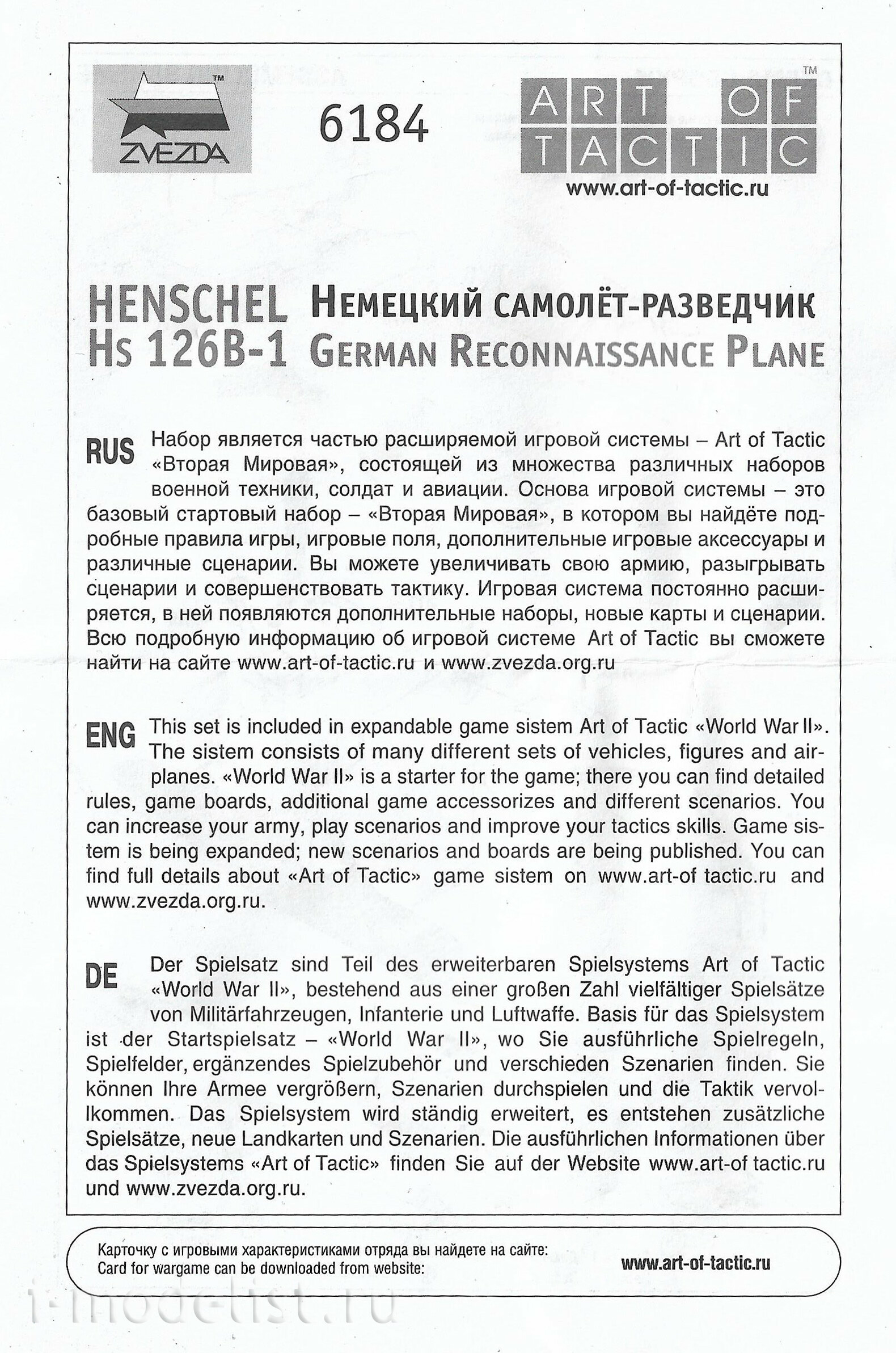 6184 Zvezda 1/144 German reconnaissance aircraft Henschel Hs 126B-1 (Henschel)