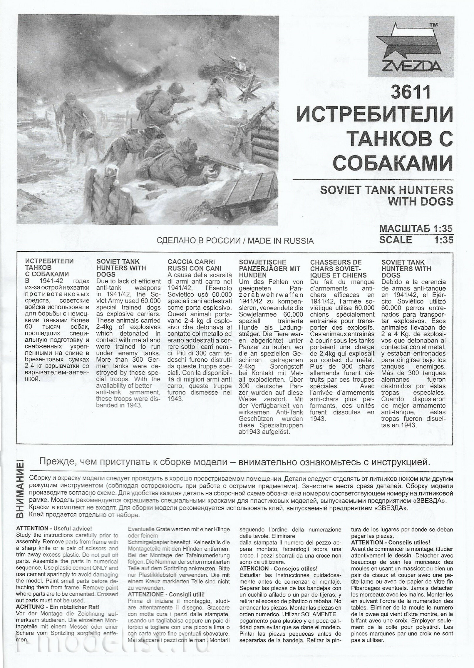 3611 Zvezda 1/35 Fighters tanks with dogs