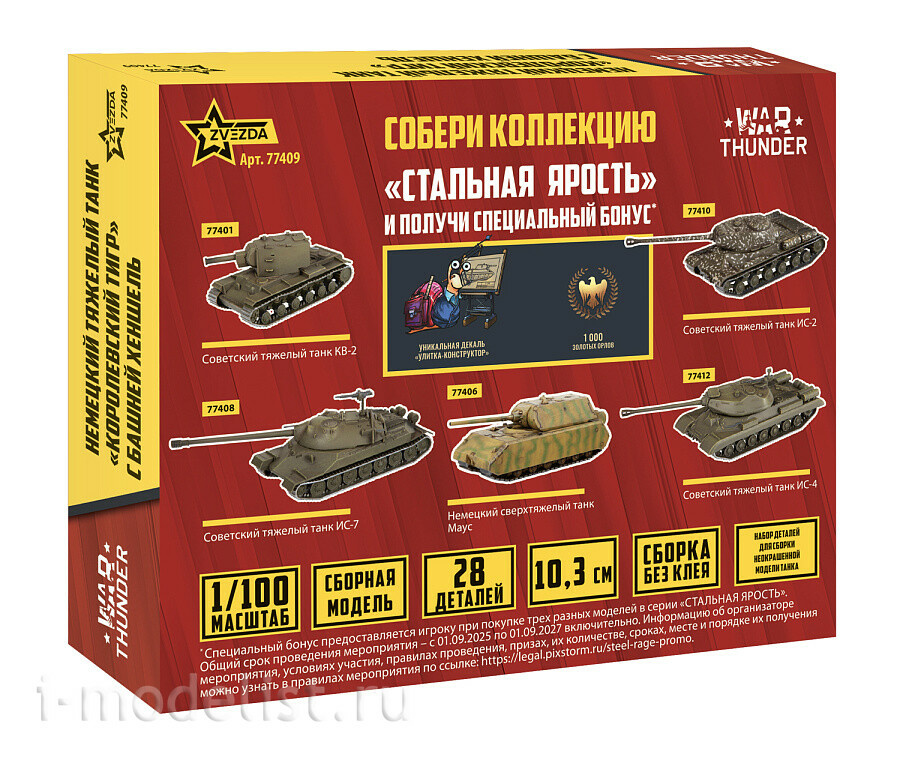 77409 Zvezda 1/100 War Thunder Тяжелый немецкий танк «Королевский тигр»
