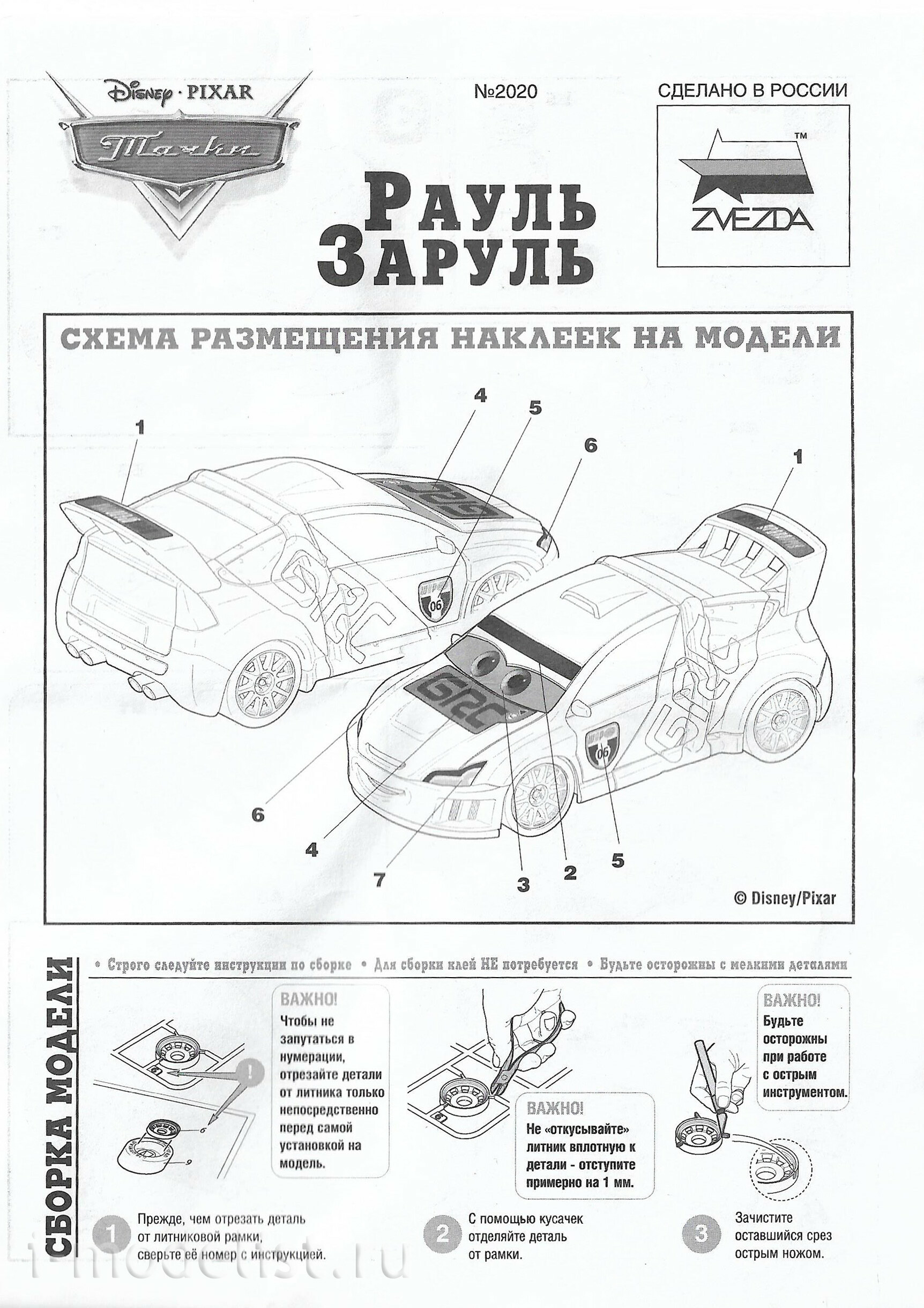 you don't need glue and years of bench modeling experience To build your first car, and a set of branded stickers will provide you with the attention of spectators on the track. The box includes a map with racing characteristics of the character, allowing you to control Raul in the Board game "Cars. Flying race."