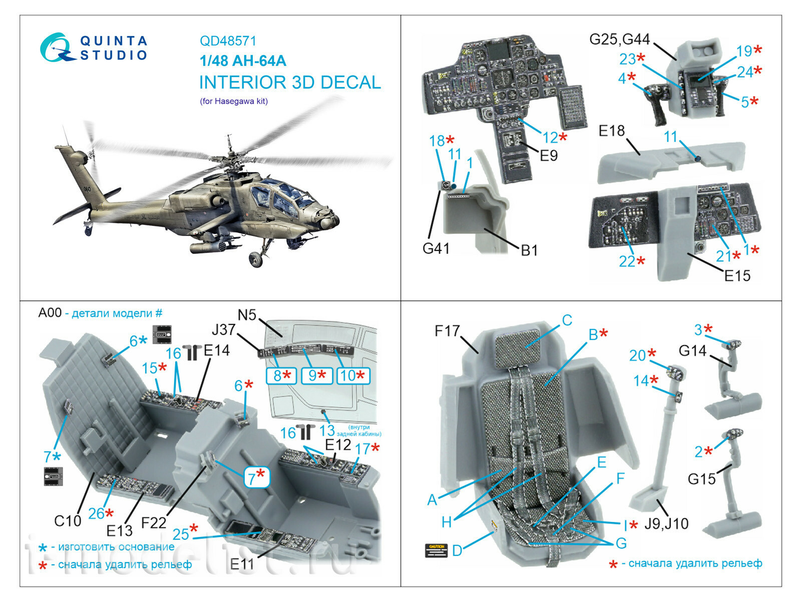 QD48571 Quinta Studio 1/48 3D Декаль интерьера кабины AH-64A (Hasegawa)
