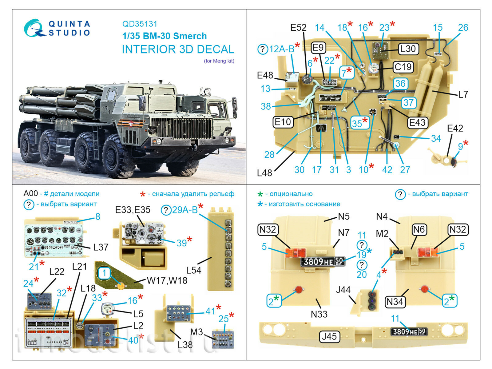 QD35131 Quinta Studio 1/35 3D Декаль интерьера кабины БМ-30 Смерч (Meng)