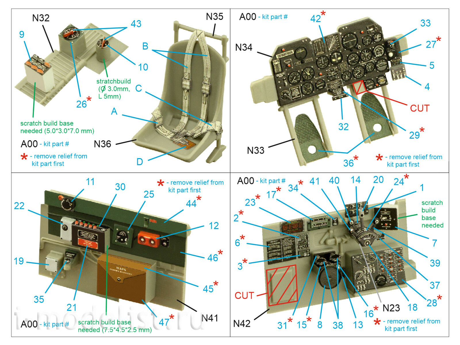QD32148 Quinta Studio 1/32 3D Cabin Interior Decal P-47D Thunderbolt Bubbletop Early (Trumpeter)