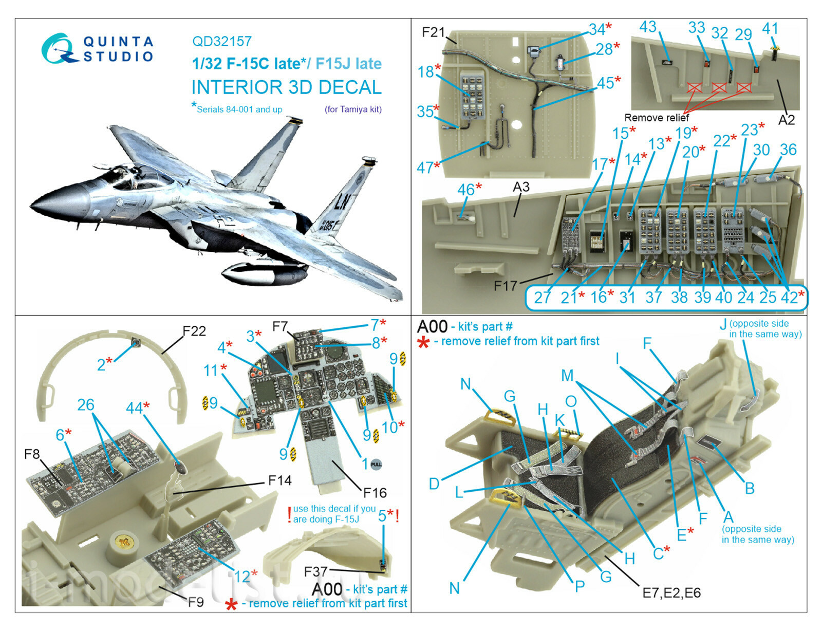 QD32157 Quinta Studio 1/32 3D Декаль интерьера кабины F-15C Late/F-15J late (Tamiya)