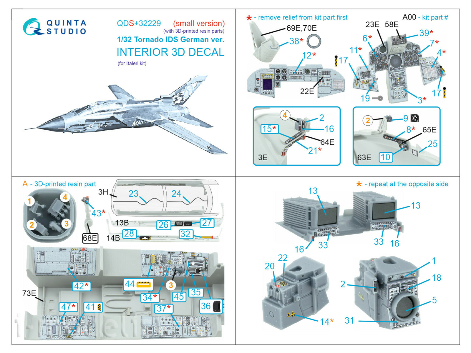 QDS+32229 Quinta Studio 1/32 3D Декаль интерьера кабины Tornado IDS German (Italeri) (Малая версия) (с 3D-печатными деталями)