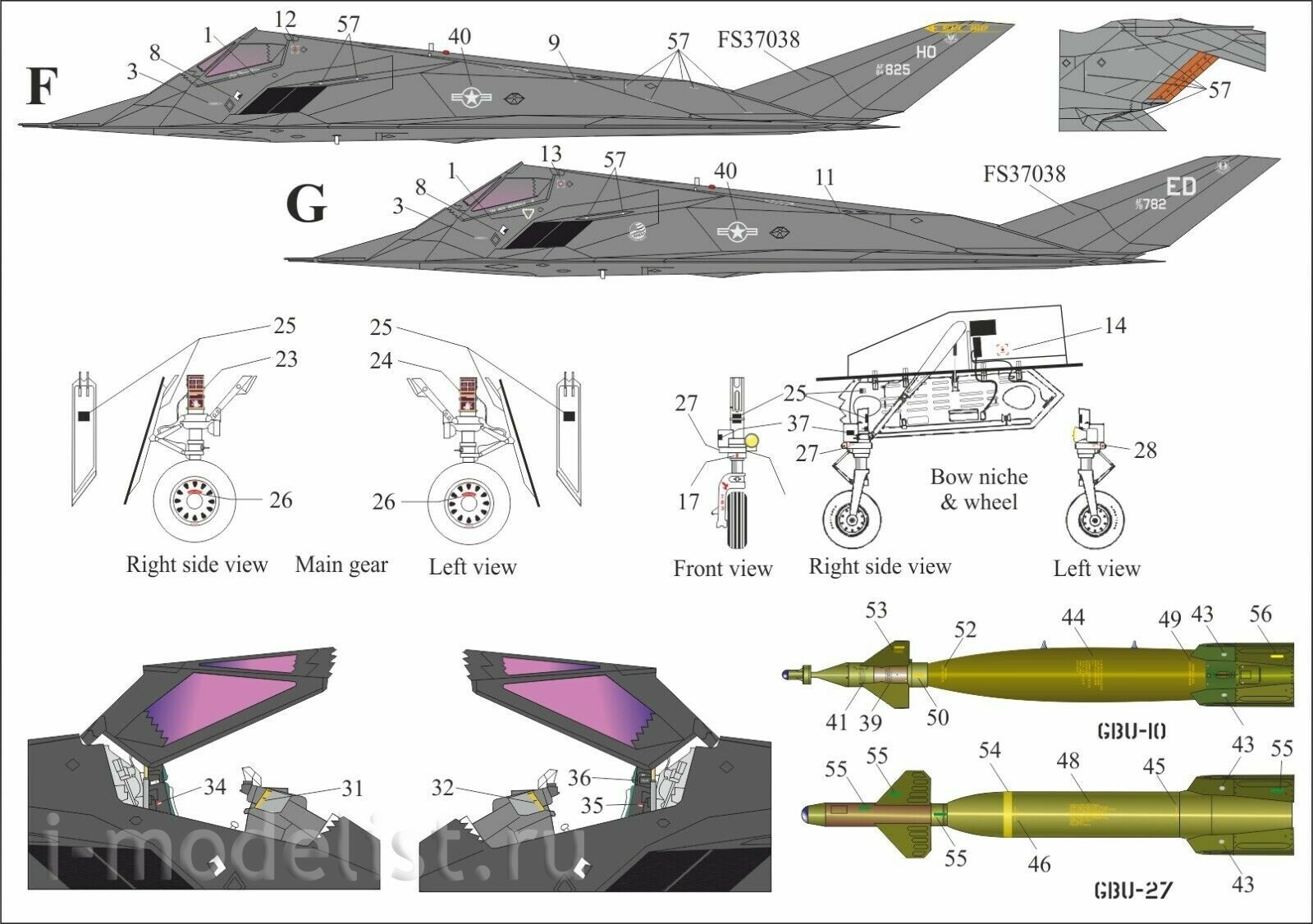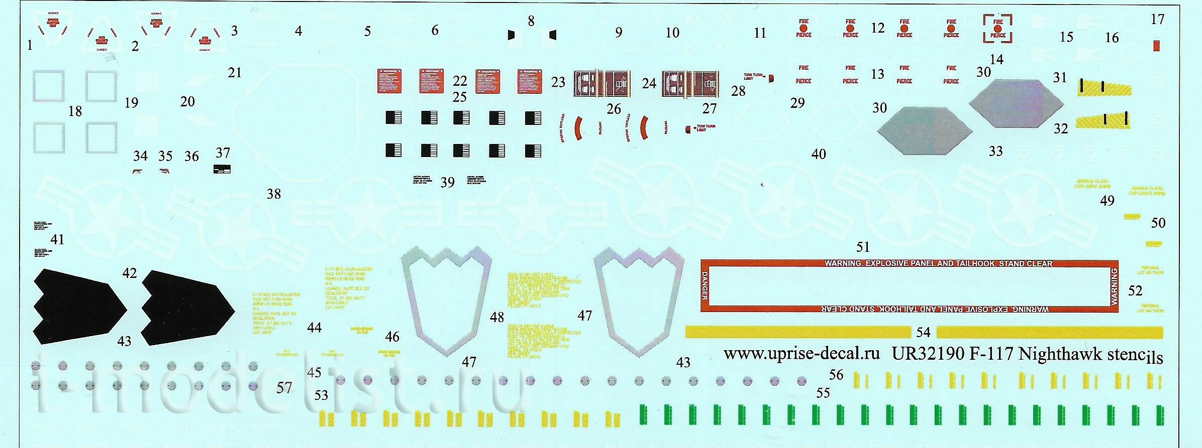 UR32190 Sunrise 1/32 Decal for F-117A Tech. inscriptions