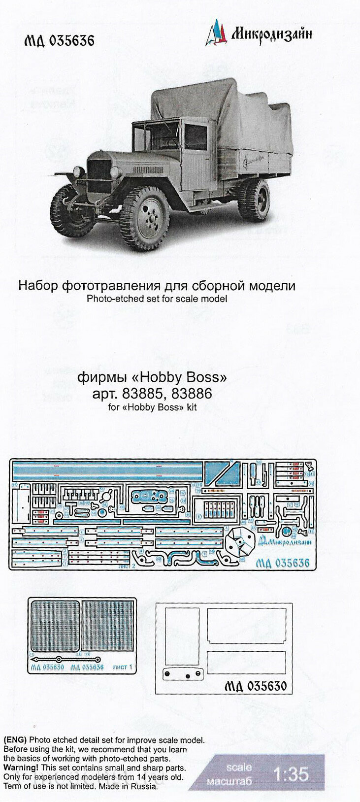 035636 Микродизайн 1/35 Набор фfromfromравления для сборной модели З-5В (HobbyBoss)