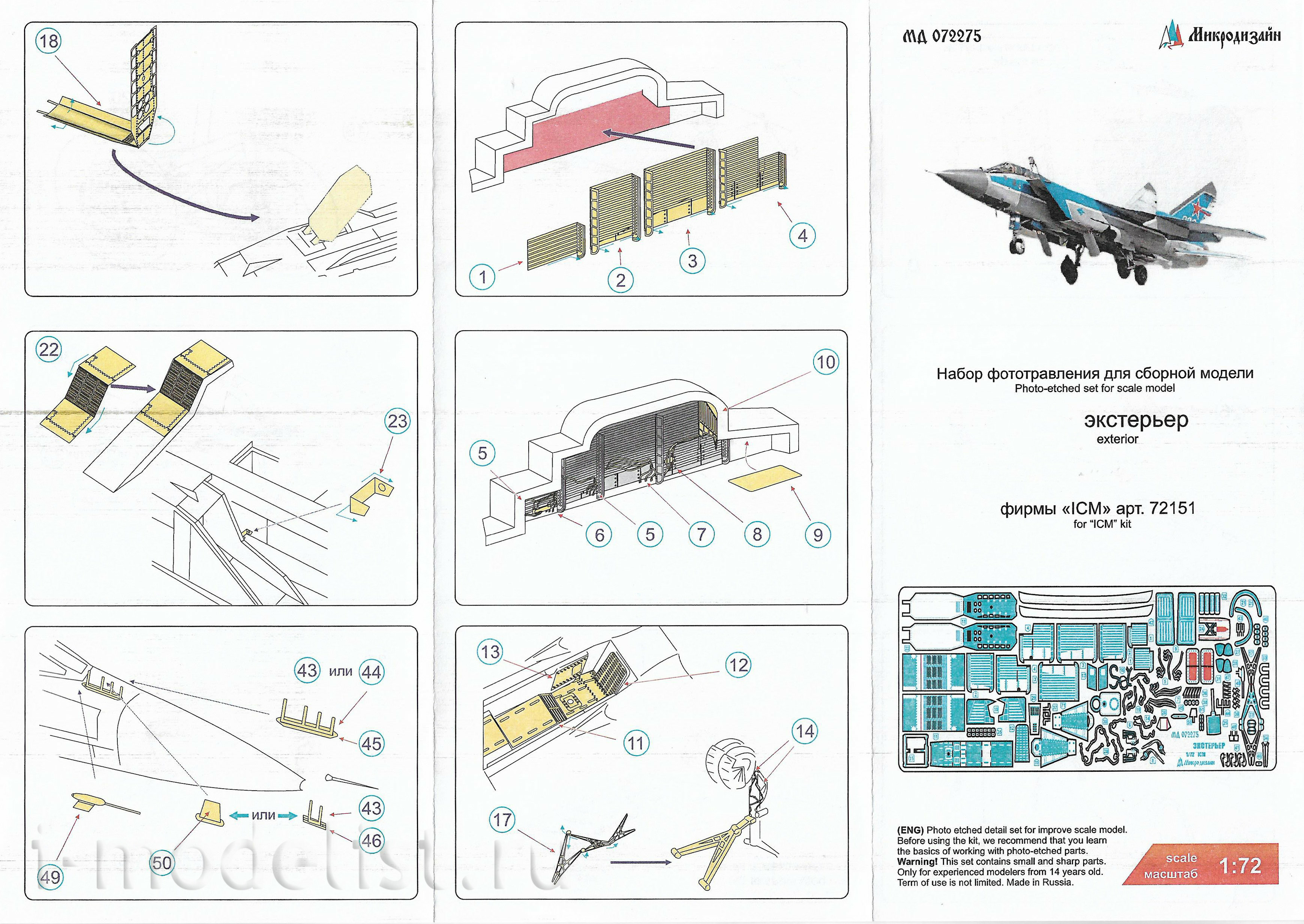 072275 Microdesign 1/72 MiGG-31 Exterior Color Photo Etching Kit (ICM)