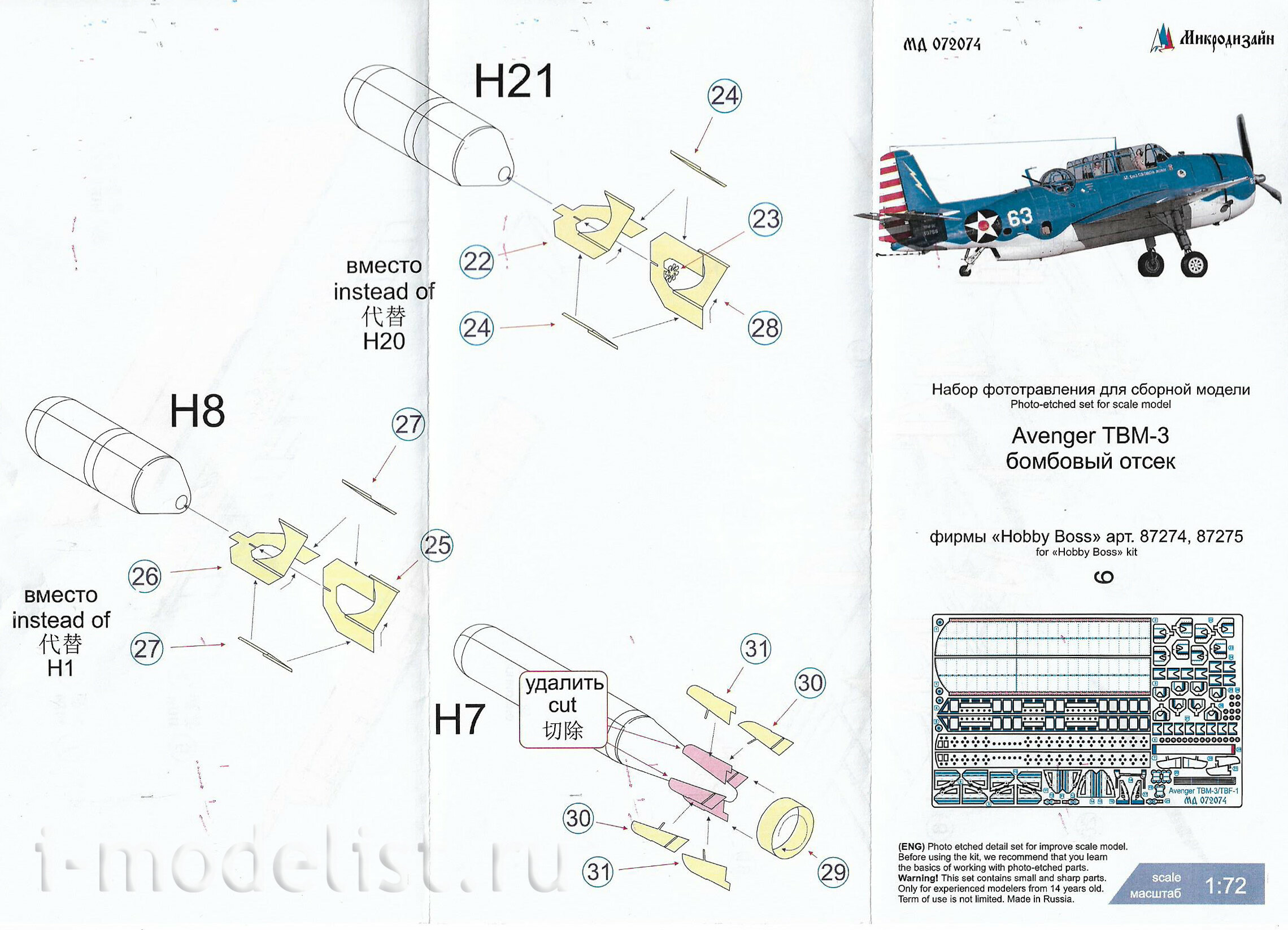 072074 Микродизайн 1/72 Набор фfromfromравления fromделки бомболюка для Avenger TBM-3 (HobbyBoss)