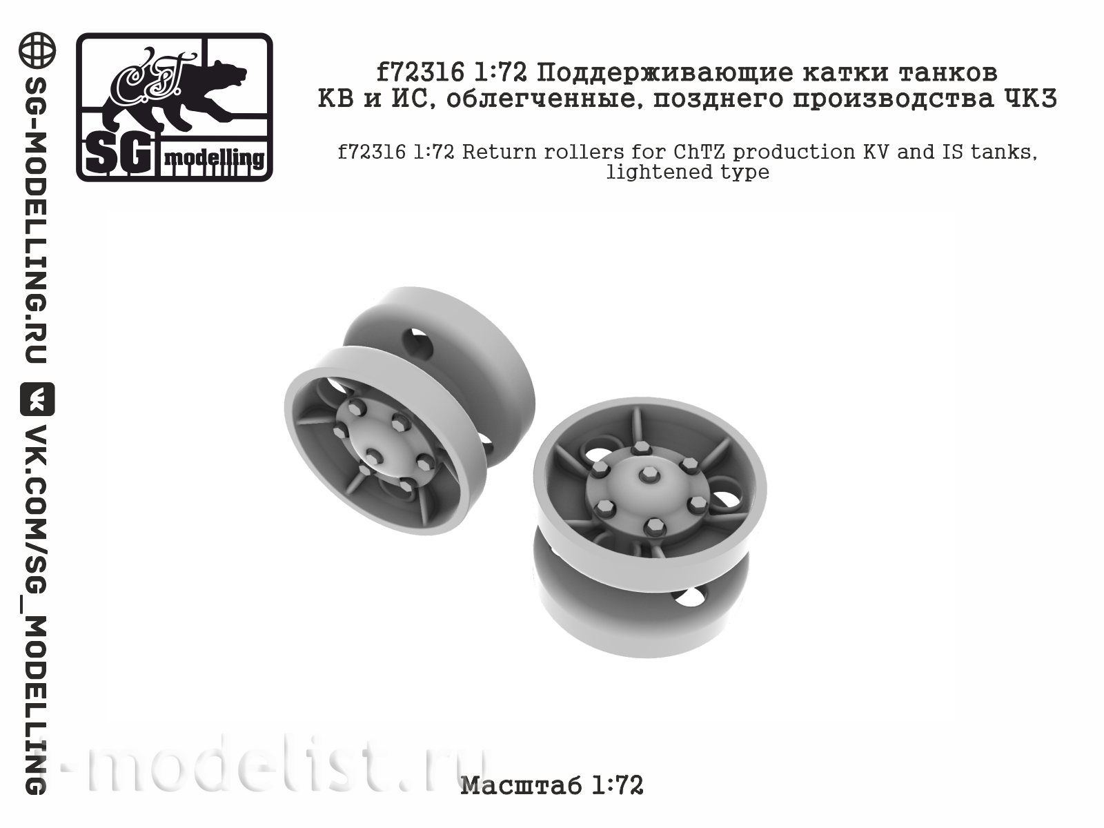 f72316 SG Modelling 1/72 Поддерживающие катки танков КВ и ИС, облегченные, позднего производства ЧКЗ