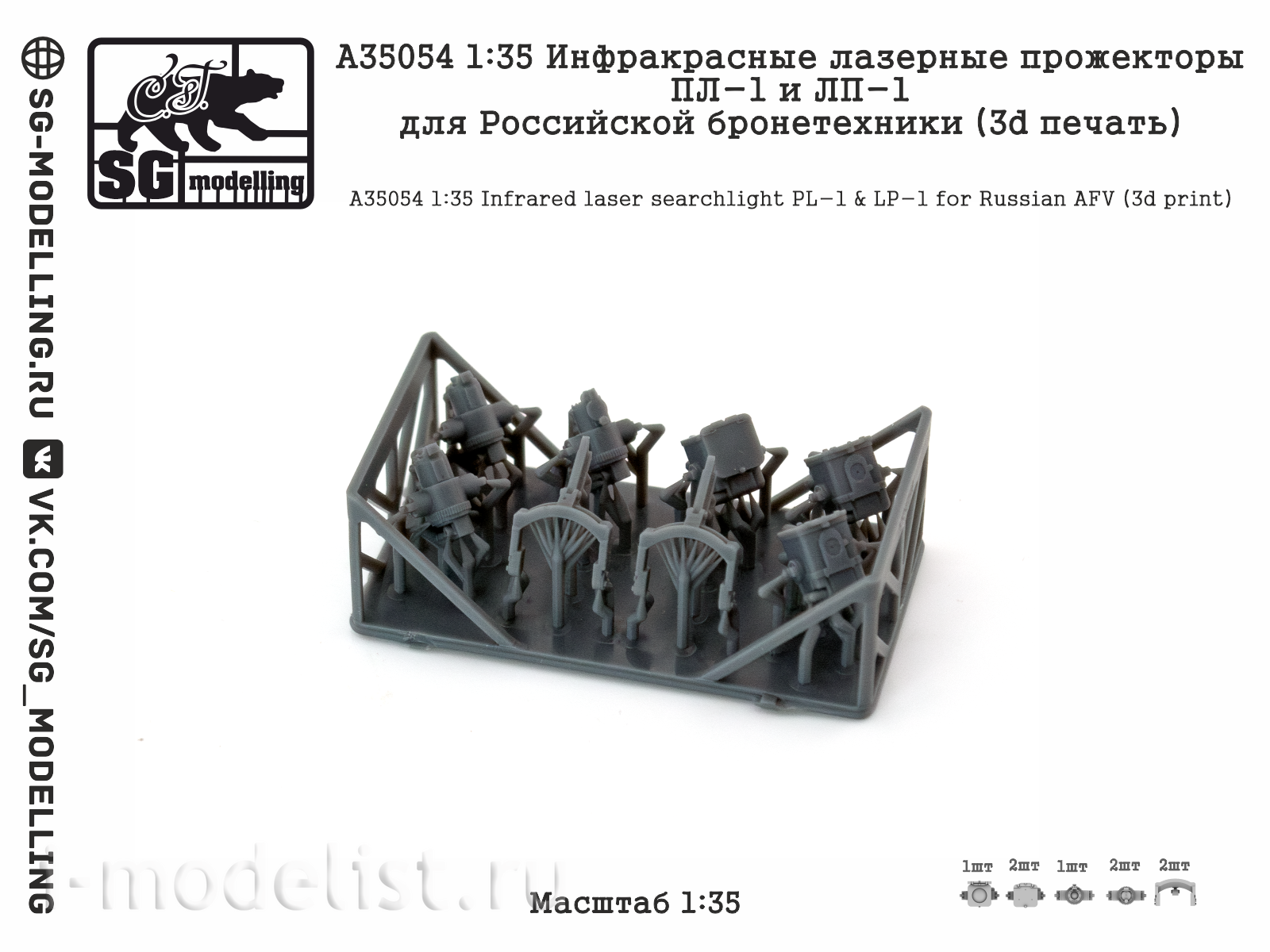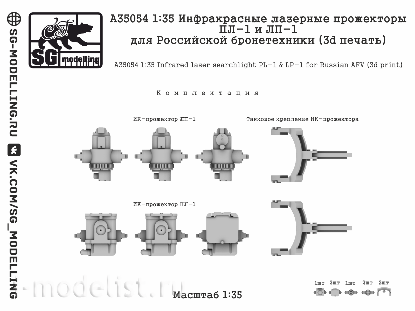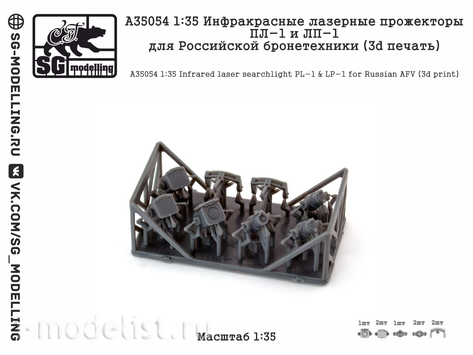 A35054 SG Modelling 1/35 Инфракрасные лазерные прожекторы ПЛ-1 и ЛП-1 для Российской броnotехники (3D-печать)