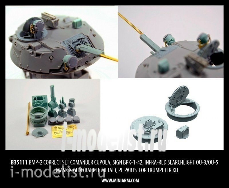 B35111 Miniarm 1/35 BMP-2 correction set, kumbashinka, gunner, illuminators OU-3,OU-5 a mask of a gun, turning the barrel, photo-etched parts.