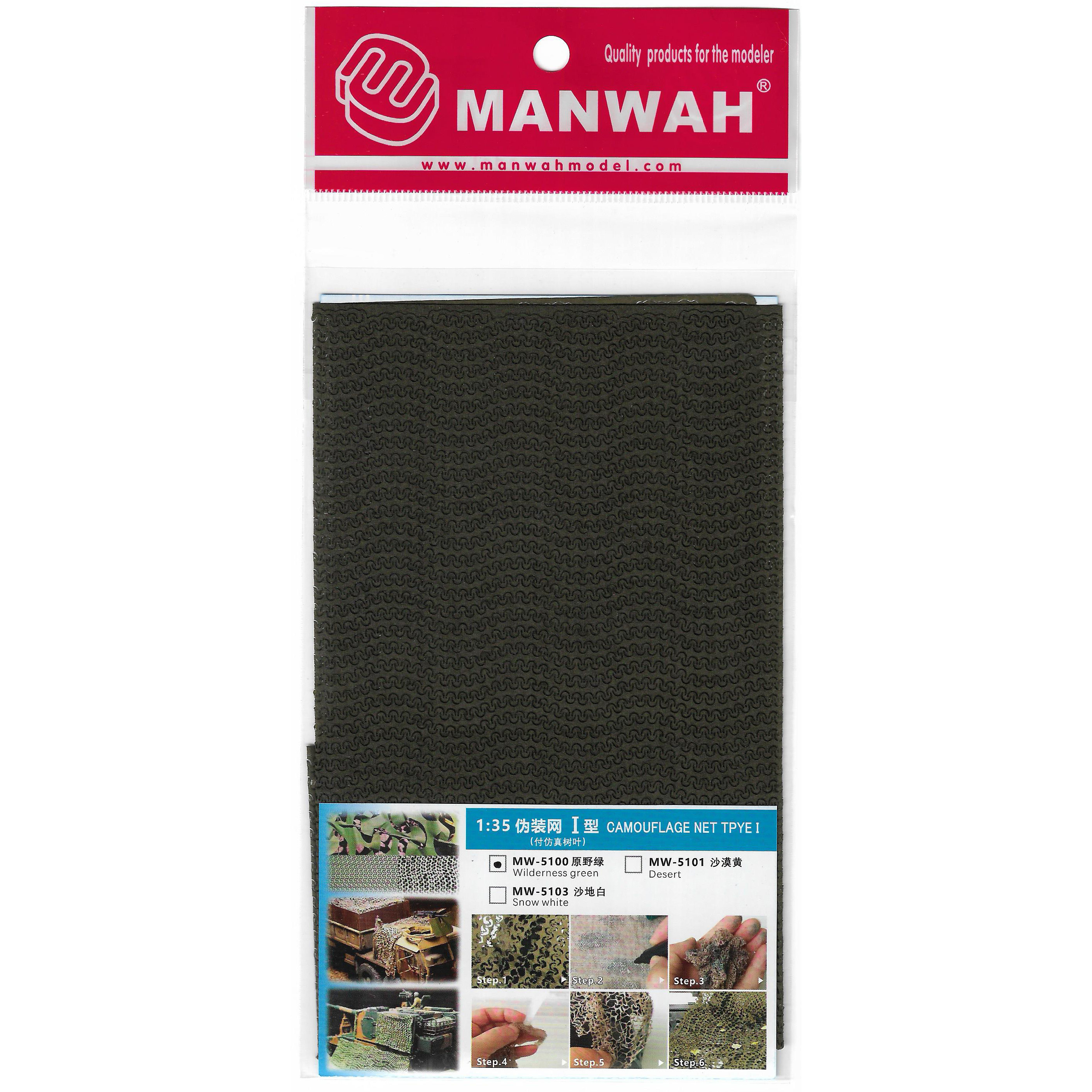 MW-5100 MANWAH 1/35 Маскировочная сеть Тип I, Цвет: полевой зеленый (с имитацией листьев)