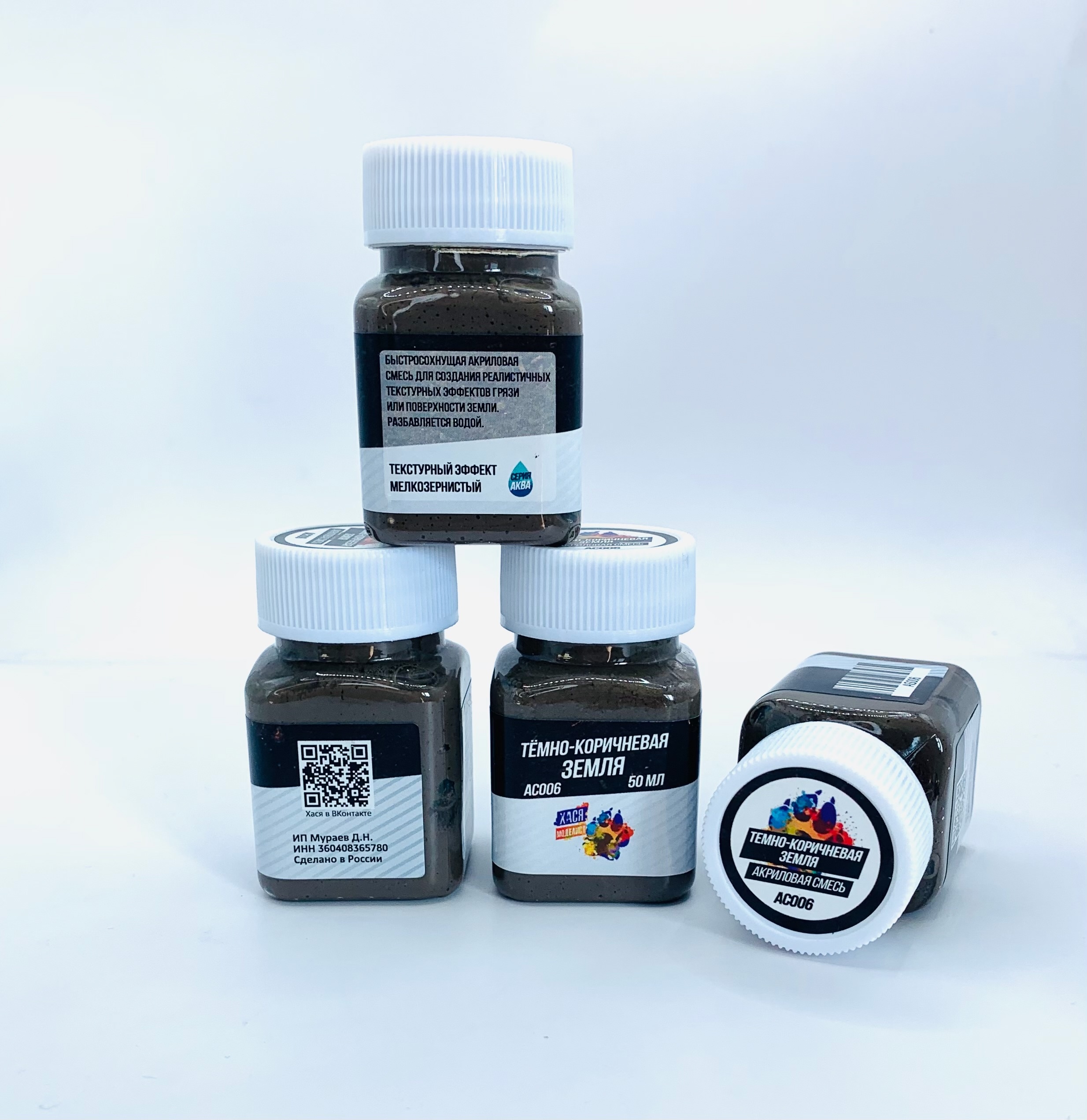AS006 Hasya Modeler Acrylic mixture, dark brown Russian earth, fine-grained, 50 ml