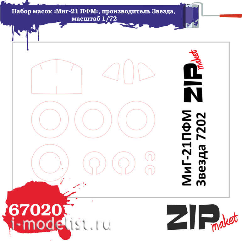 67020 ZIPmaket 1/72 set of masks "MiG-21 PFM", manufacturer Zvezda