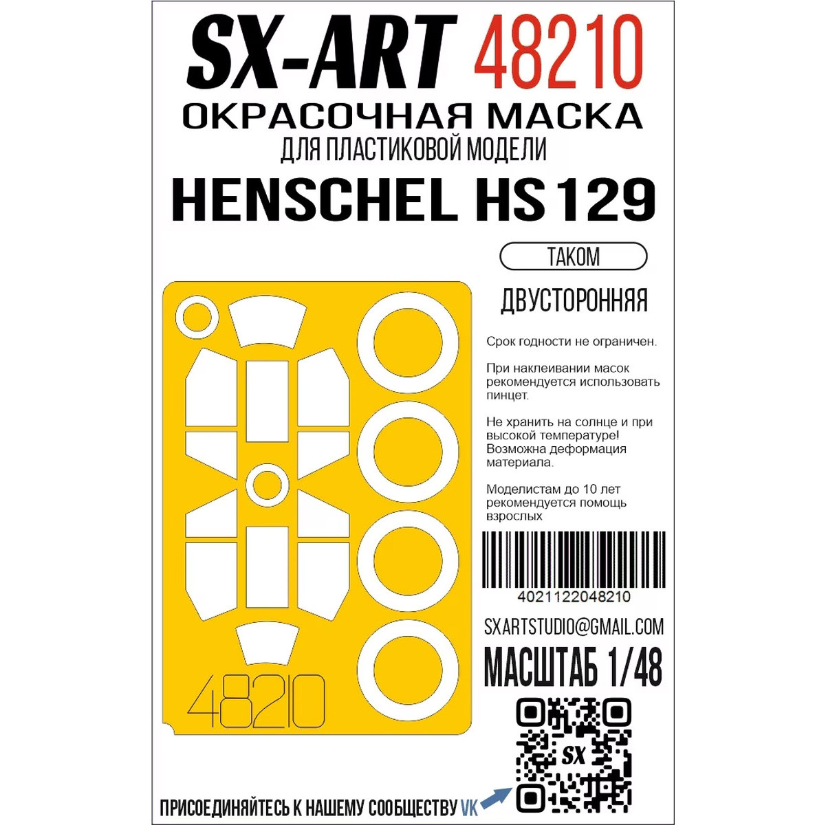 48210 SX-Art 1/48 Окрасочная маска HS-129 (Takom) двусторонняя
