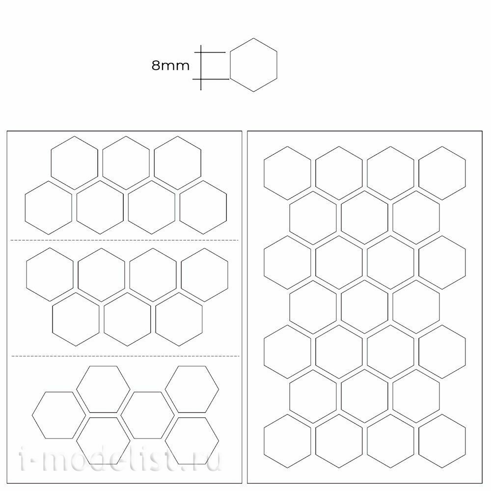 T-157 MiniWarPaint Маска окрасочная шестиугольники, размер XL, 8 мм.