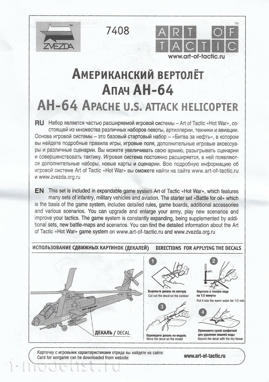 7408 Zvezda 1/144 Scales of the American helicopter Apache AH-64
