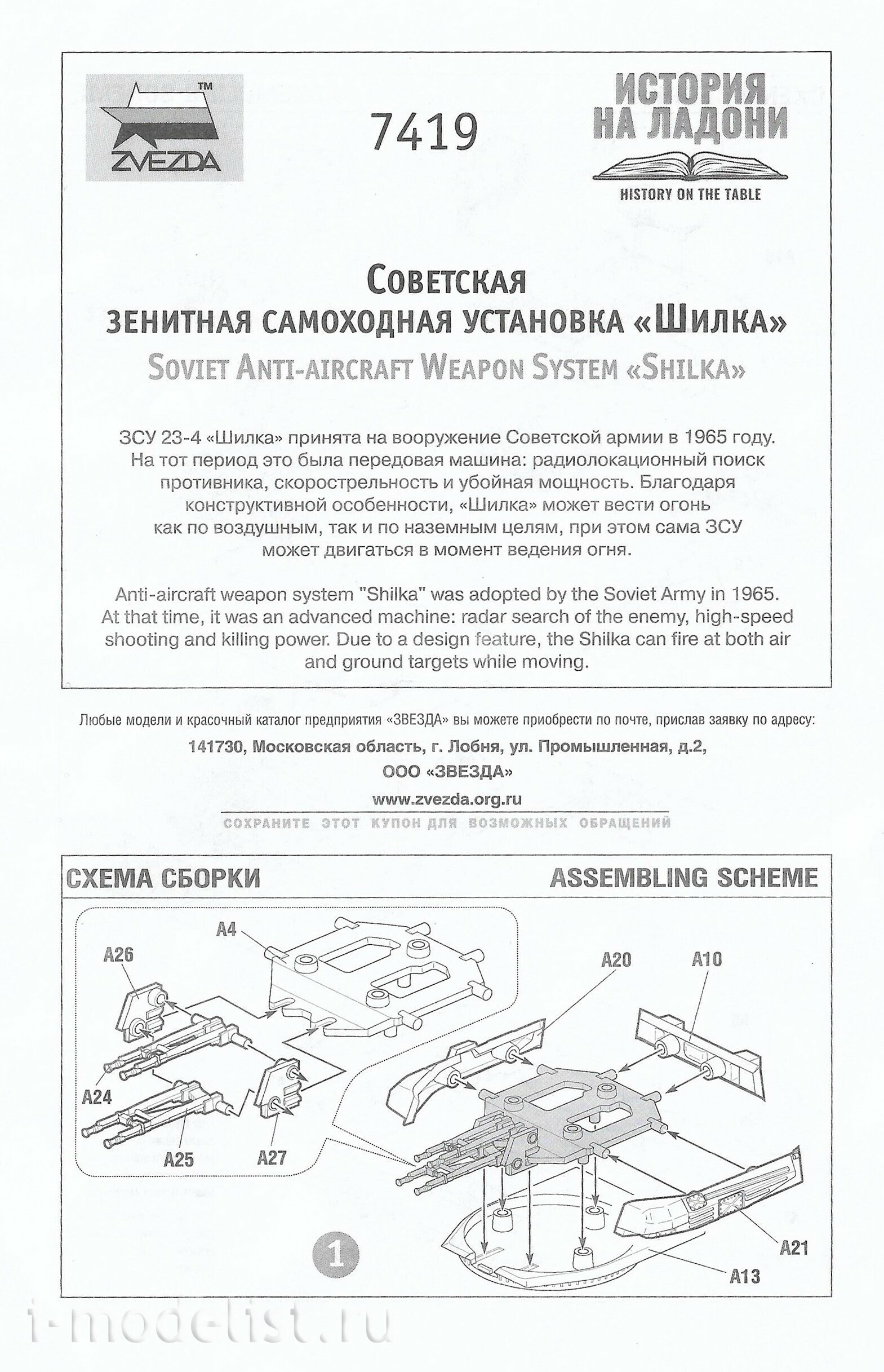 7419 Zvezda 1/100 Soviet antiaircraft self-propelled "Shilka"