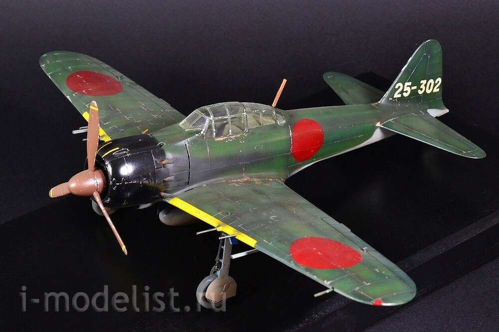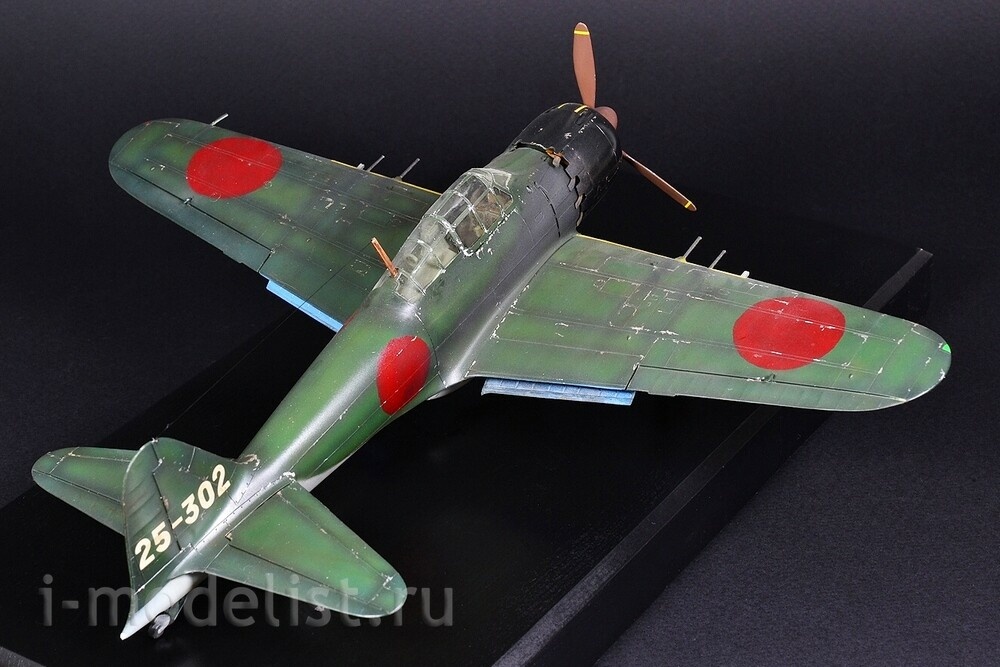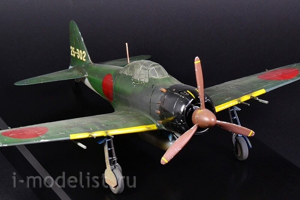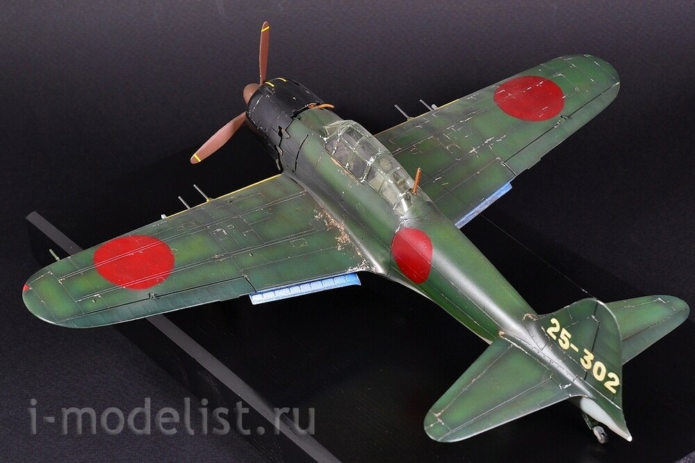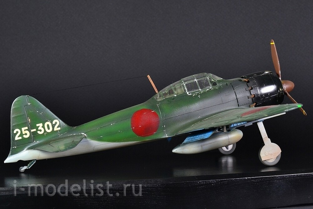 The Mitsubishi A6M "Zero" is a long-range carrier-based fighter aircraft manufactured by Mitsubishi Aircraft Company, and was operated by the Imperial Japanese Navy (IJN) from 1940 to 1945. The Zero is considered to have been the most capable carrier-based fighter in the world when it was introduced early in World War II, combining excellent maneuverability and very long range. The Imperial Japanese Navy Air Service also frequently used it as a land-based fighter. A6M5 is a modification of the A6M3, on which a smaller wing span was installed - 11 meters (area 21.3 m²) with reinforced skin, which increased the roll speed and reached a speed of 657 km/h in a dive. The exhaust system was also redesigned - each pair of cylinders received an exhaust pipe instead of a common exhaust manifold - this gave several additional km/h to the speed. To prevent hot exhaust gases from burning through the casing in the area of the pipes, it was reinforced with steel sheets. The aircraft's speed increased to 565 km/h at 6000 meters, thus becoming the fastest modification of the Zero. A total of 1,701 aircraft were built. The model is built from a Tamiya kit, scale 1:48. Painted with preshading (darkening) for a more voluminous appearance of the model. All over the plane you can see chipped paint down to bare aluminum. Painting was done with RealColor acrylic paints from AK,Related Products