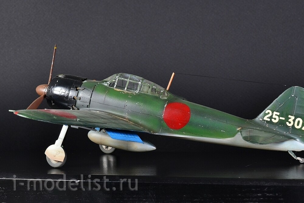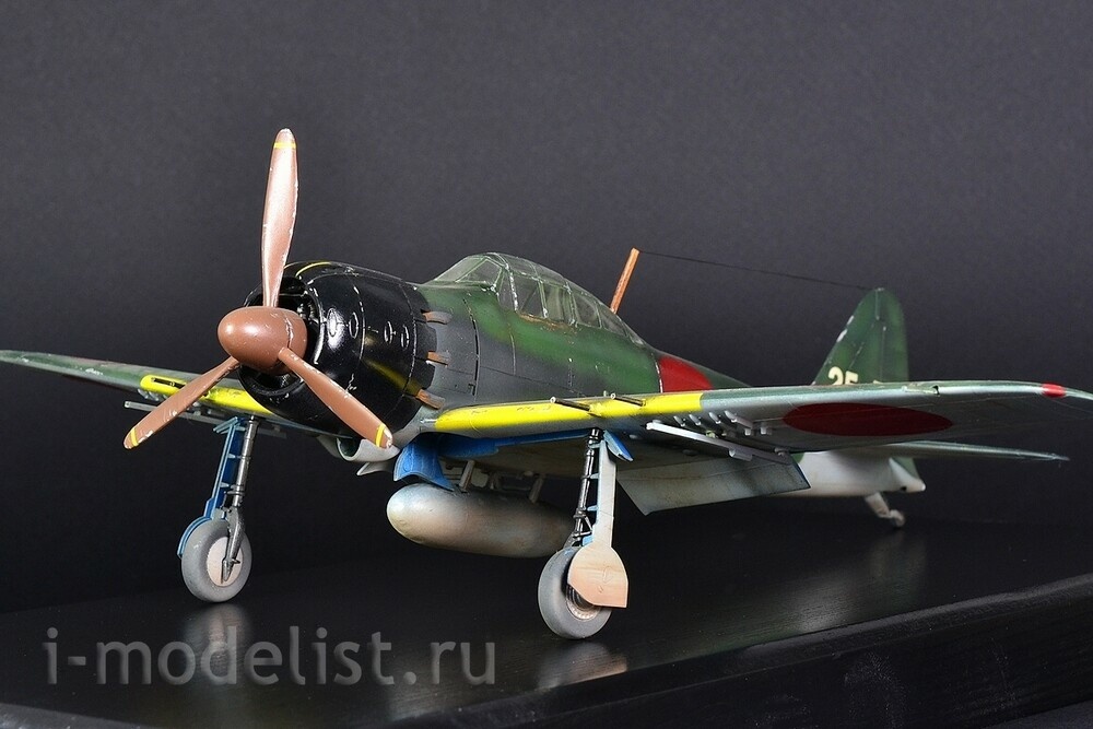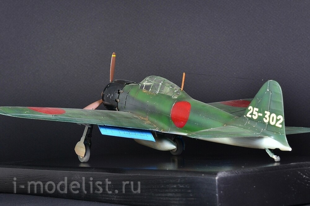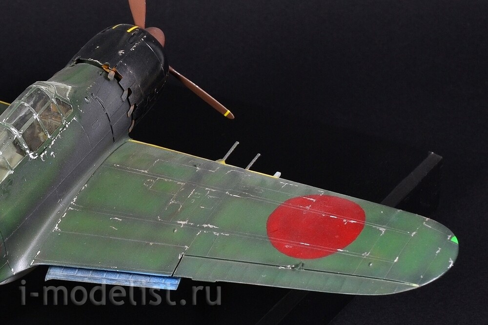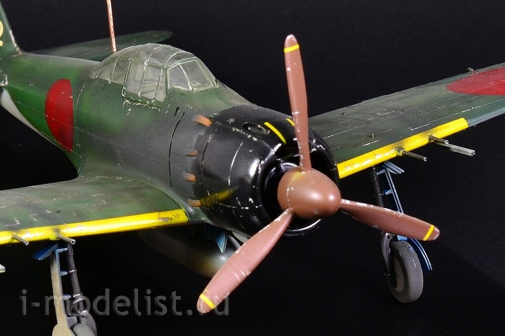 The Mitsubishi A6M "Zero" is a long-range carrier-based fighter aircraft manufactured by Mitsubishi Aircraft Company, and was operated by the Imperial Japanese Navy (IJN) from 1940 to 1945. The Zero is considered to have been the most capable carrier-based fighter in the world when it was introduced early in World War II, combining excellent maneuverability and very long range. The Imperial Japanese Navy Air Service also frequently used it as a land-based fighter. A6M5 is a modification of the A6M3, on which a smaller wing span was installed - 11 meters (area 21.3 m²) with reinforced skin, which increased the roll speed and reached a speed of 657 km/h in a dive. The exhaust system was also redesigned - each pair of cylinders received an exhaust pipe instead of a common exhaust manifold - this gave several additional km/h to the speed. To prevent hot exhaust gases from burning through the casing in the area of the pipes, it was reinforced with steel sheets. The aircraft's speed increased to 565 km/h at 6000 meters, thus becoming the fastest modification of the Zero. A total of 1,701 aircraft were built. The model is built from a Tamiya kit, scale 1:48. Painted with preshading (darkening) for a more voluminous appearance of the model. All over the plane you can see chipped paint down to bare aluminum. Painting was done with RealColor acrylic paints from AK,Related Products