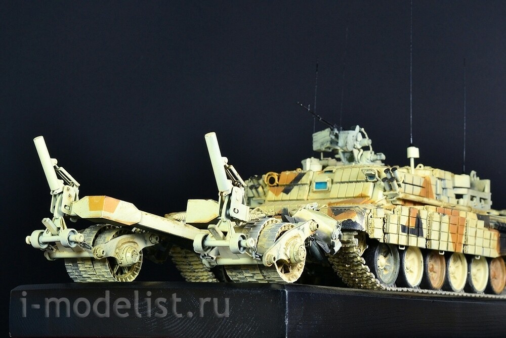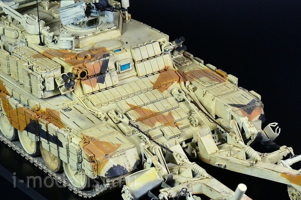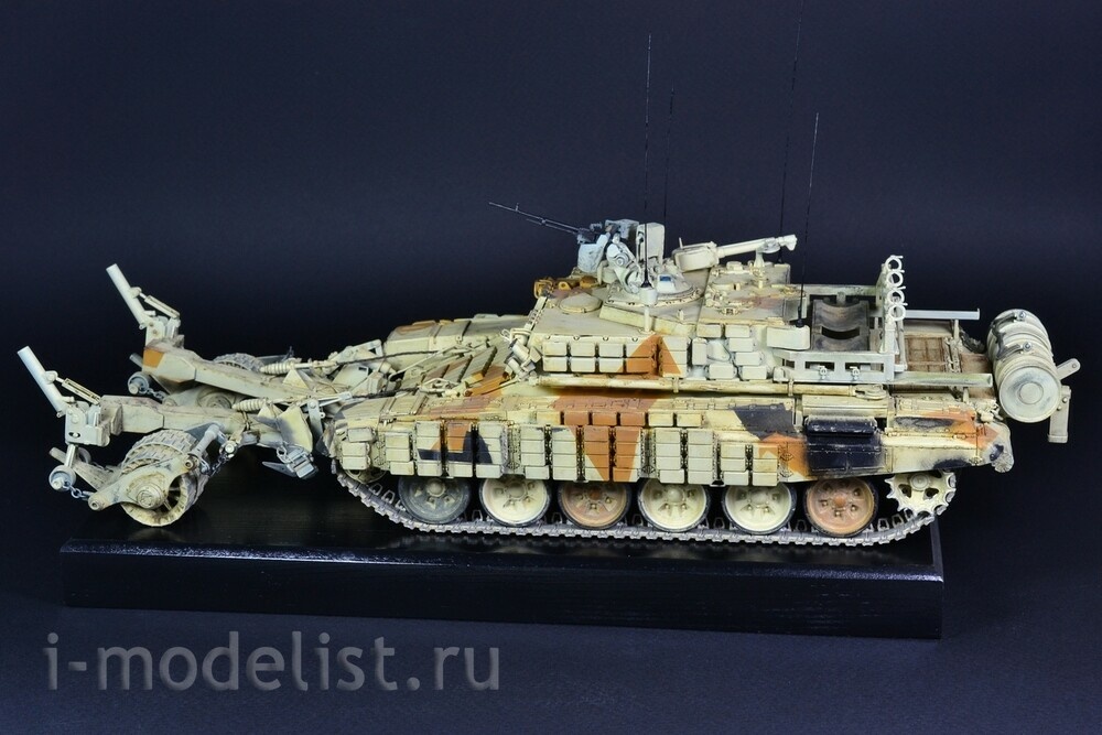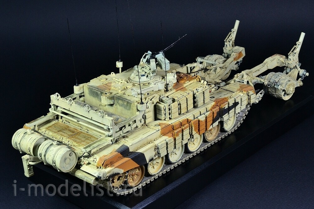 The Russian BMR-3M is a T-90 hull with the turret replaced with a superstructure housing the crew and other mine clearing equipment. Attached to the front of the vehicle are two arms each with solid steel wheels that whilst driving over mines, their weight detonates them and thanks to their thickness are not damaged, allowing the vehicle to continue along its path with other tanks such as the T-90 following it. The model is built from a beautiful MENG kit, using photo-etched parts, metal cables, antennas and chains. The paint job is desert camouflage, designed for the export market; the vehicles were exhibited in this form at weapon shows in the Middle East. This model is shown in a slightly shabby state, the paint has worn out in places, even rusted in some places, and is heavily dusted, as if the vehicle was actively fighting, for example, in Syria. Painting was done with AMMO acrylic paints, weathering effects were applied using various AMMO and AK Interactive productsRelated Products