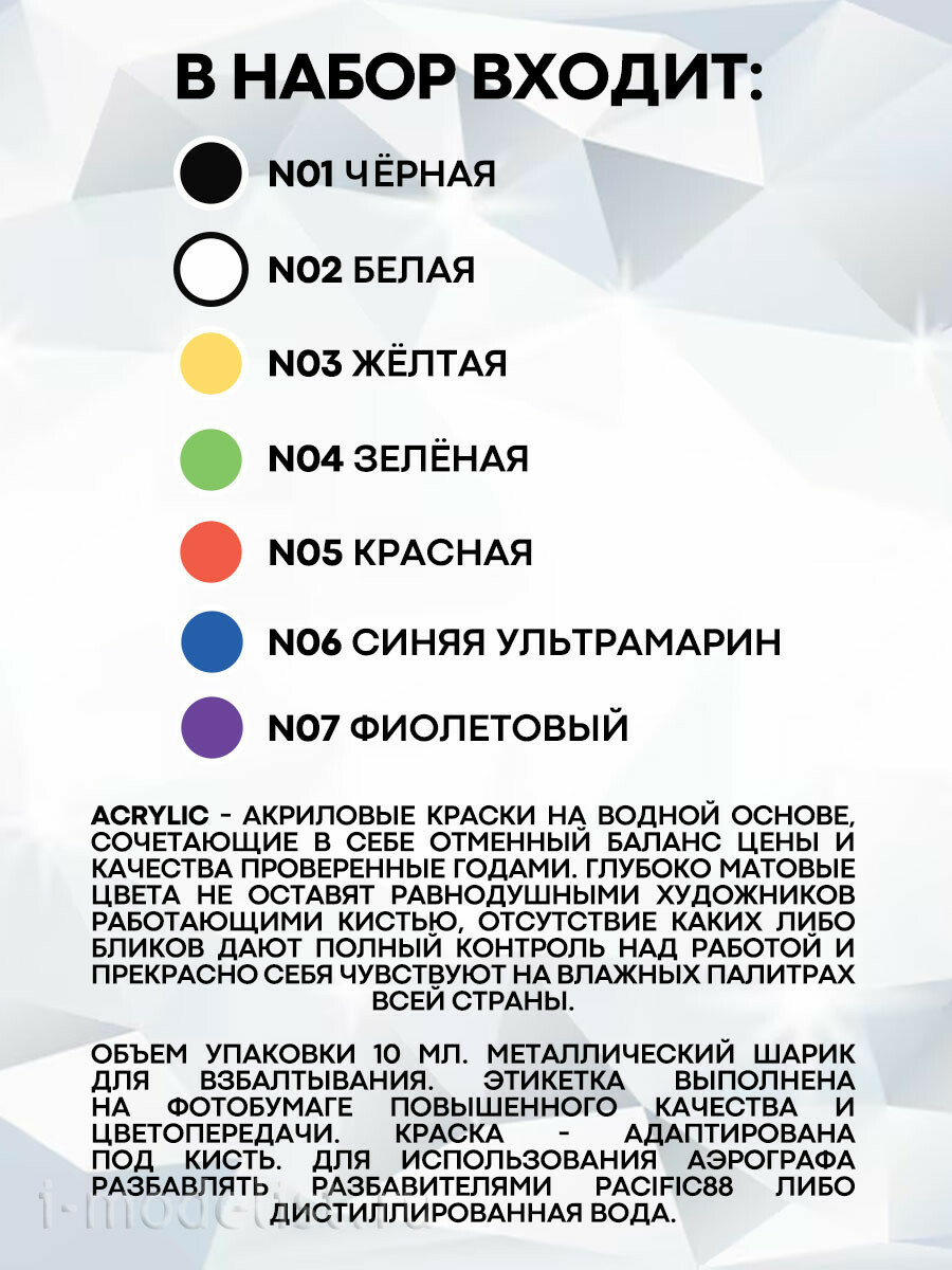 Внимание: краска не переносит минусовых температур!!! (за исключением красок с артикулом FF).