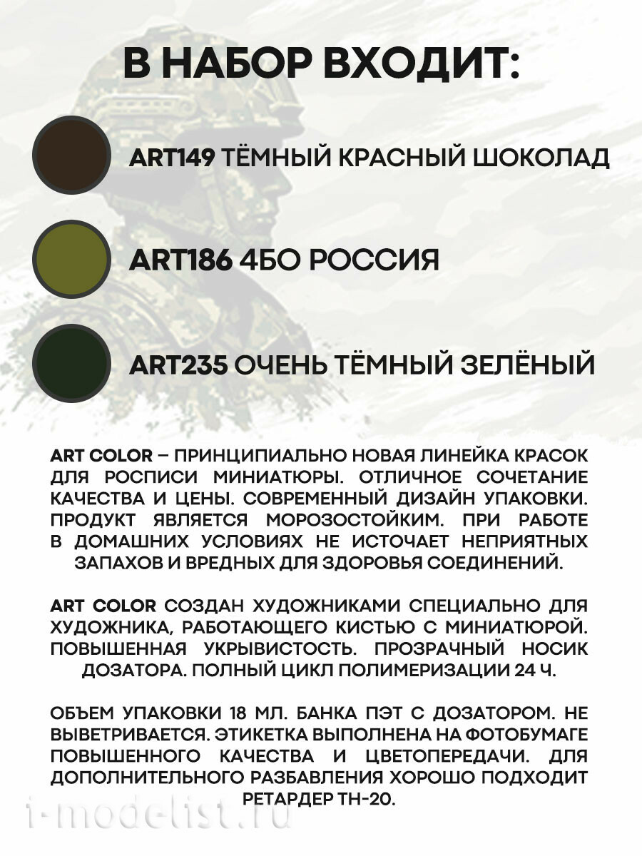 1051 Pacific88 Набор красок Art color Российский цифровой камуфляж (Russian digital camouflage), 3 шт.
