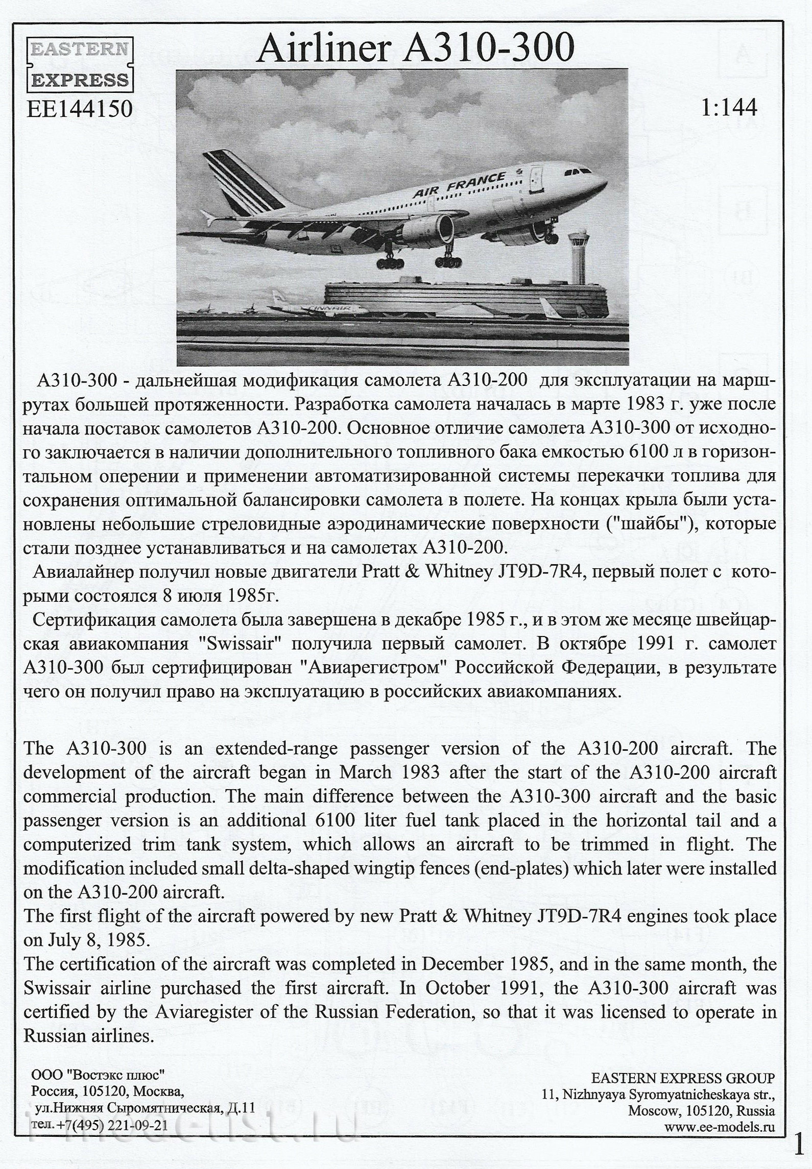 144150-3 Orient Express 1/144 Airliner A310-300 AIR TRANSAT