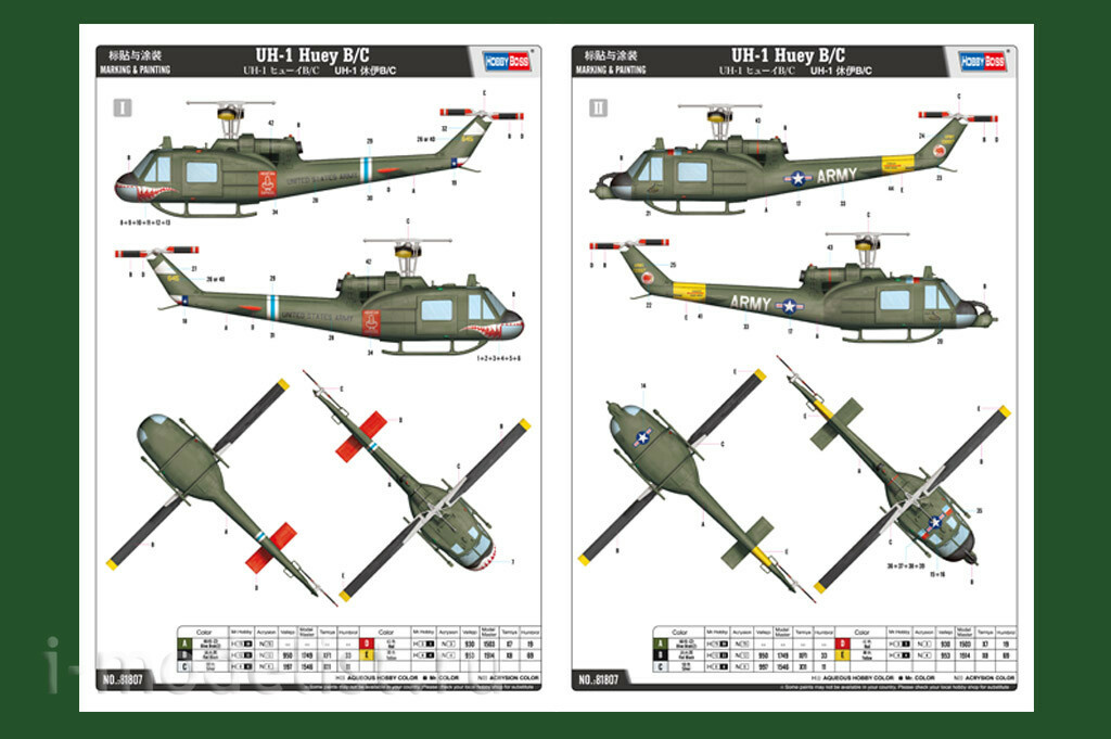 81807 HobbyBoss 1/18 UH-1 Huey B/C Helicopter