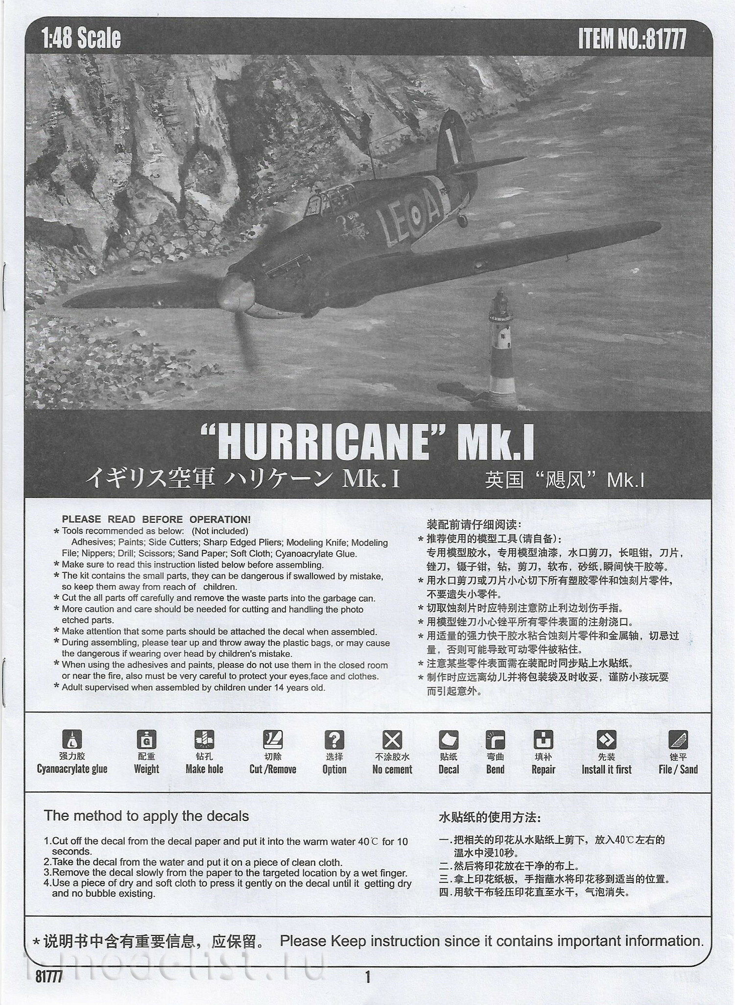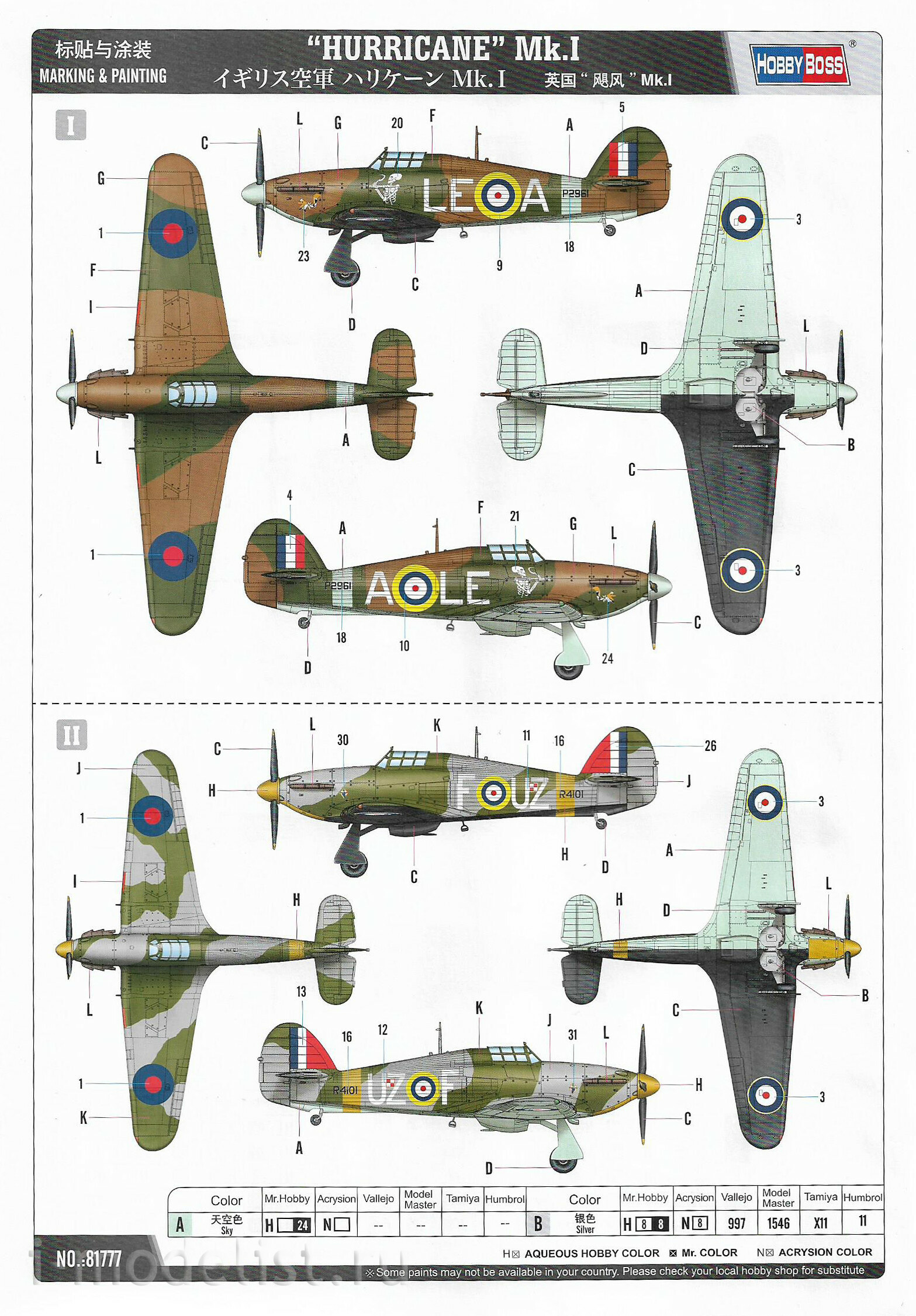 81777 HobbyBoss 1/48 Hurricane Mk. 1 Fighter