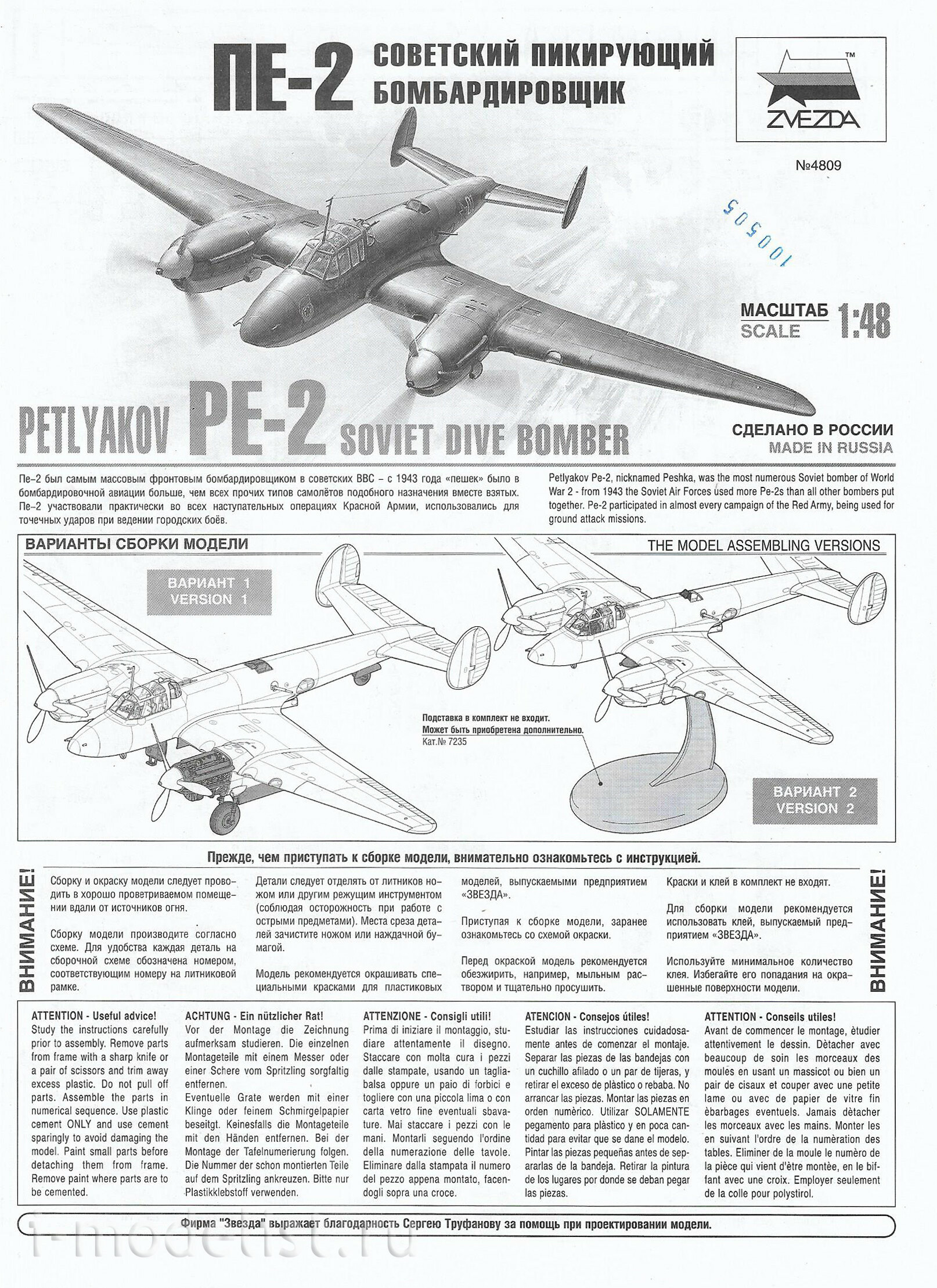 4809 Zvezda 1/48 Soviet PE-2 dive bomber