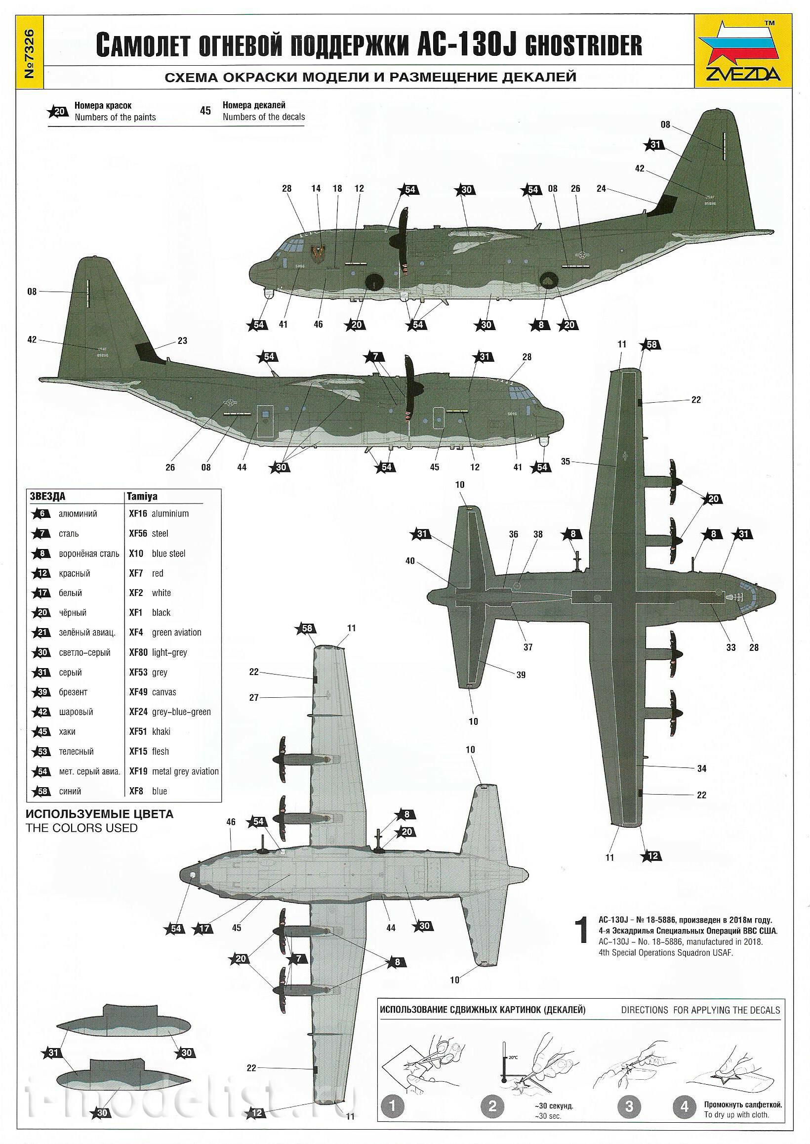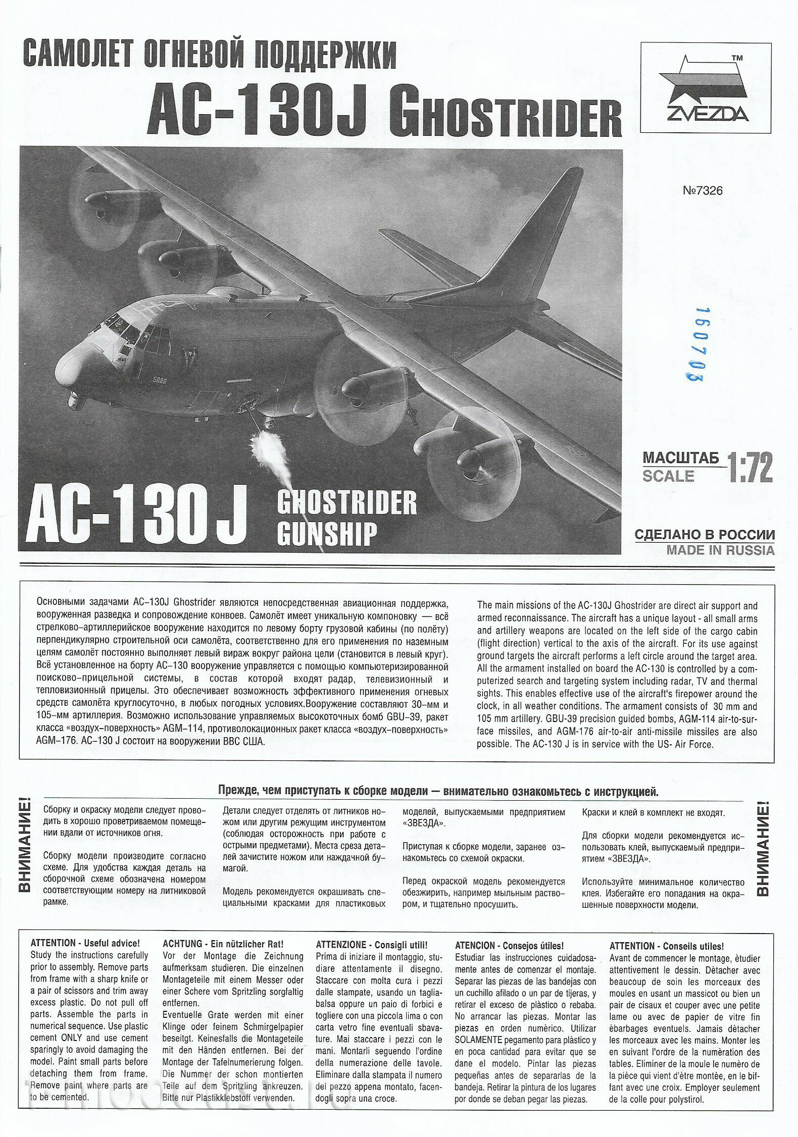 7326 Zvezda 1/72 AC-130J Ghostrider Fire Support Aircraft