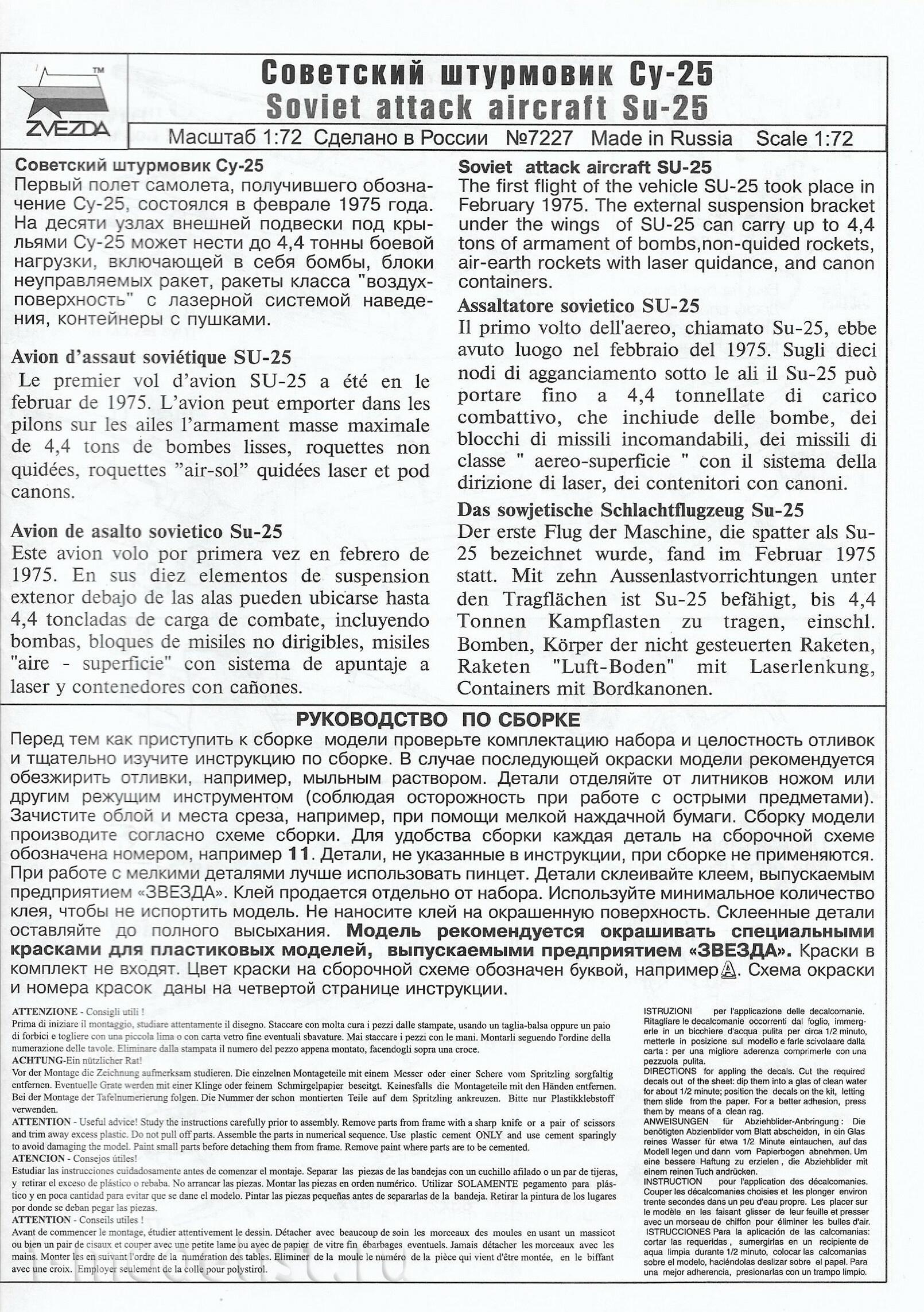 7227П Zvezda 1/72 Подарочный набор: Советский штурмовик Су-25