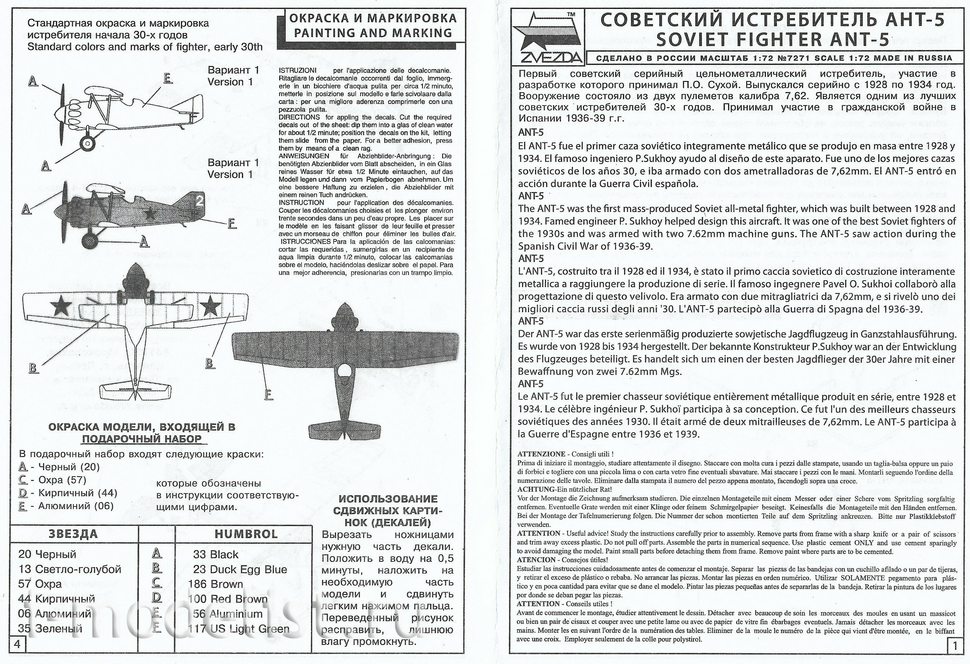 7271П Zvezda 1/72 Подарочный набор: Aircraft АНТ-5