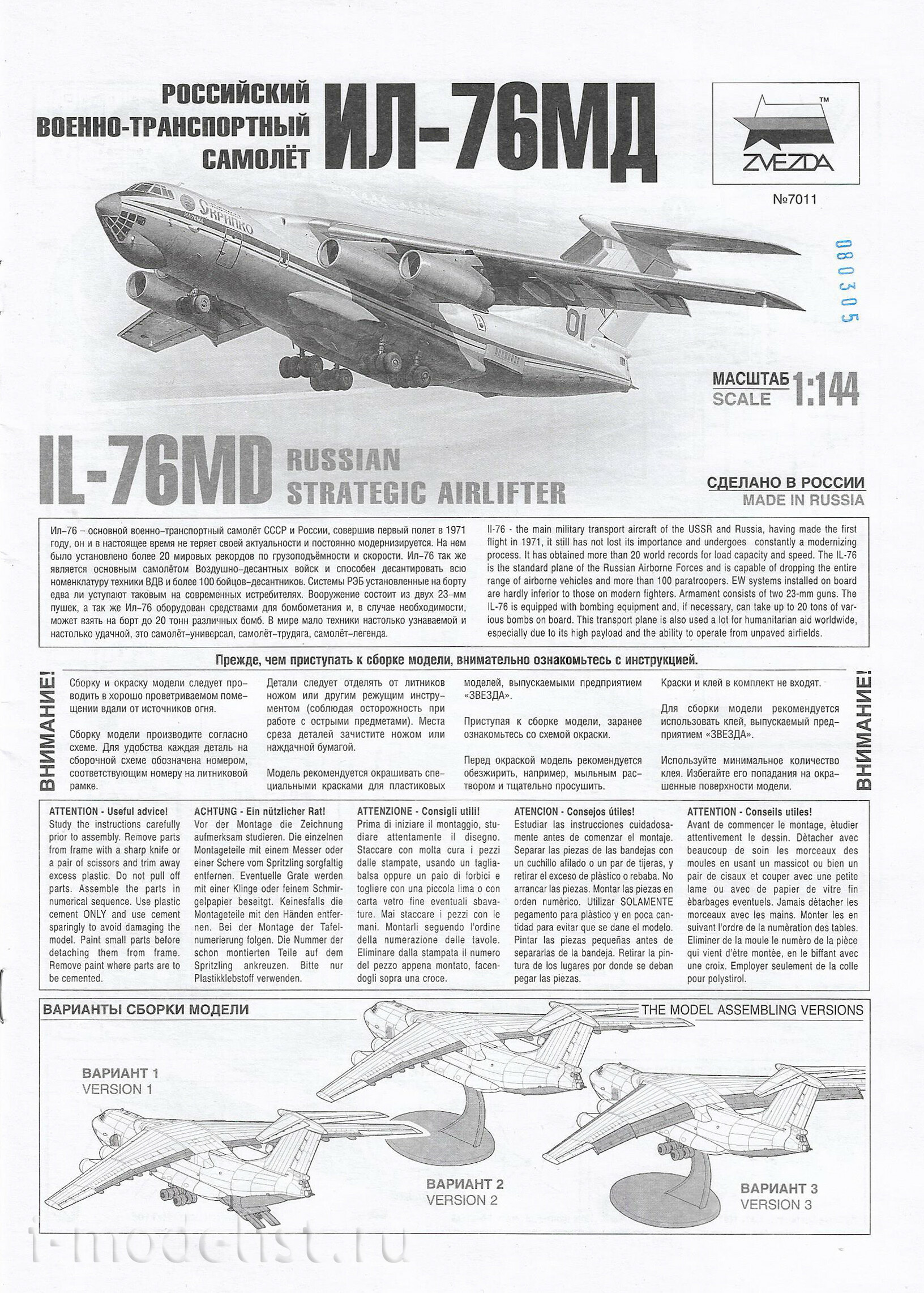 7011 Zvezda 1/144 Military transport aircraft Il-76MD