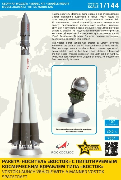 7501 Zvezda 1/144 Ракета-носитель "Восток" с пилfromируемым космическим кораблём типа "Восток"