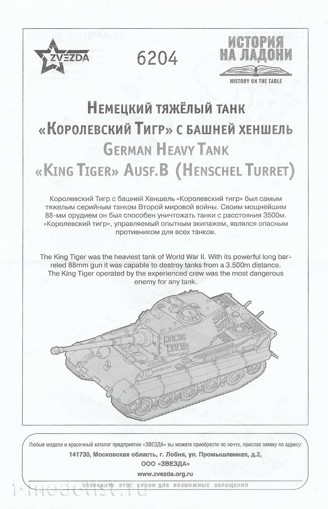 77409 Zvezda 1/100 War Thunder Тяжелый немецкий танк «Королевский тигр»